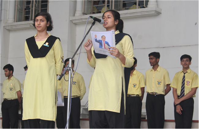 A special morning assembly was organised by the council members on the occasion of Ambedkar Jayanti. Aditi and Vansh delivered a short speech about Baba Saheb’s life and struggles while drafting the Indian Constitution. Anushka recited a poem on ‘How Baba Saheb was’.