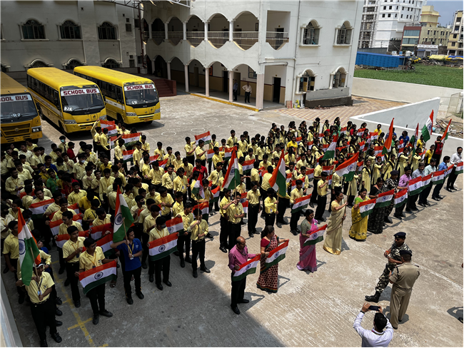 Description: The Jawans of SSB 40 , Batalion ,Danapur,Patna distributed National Flag amongst the students on the occasion of “Har Ghar Tiranga” .The jawans shared the protocols of hoisting the National Flag with respect .He requested the students to hoist the flag on 15th August.