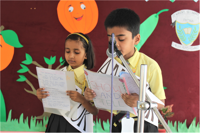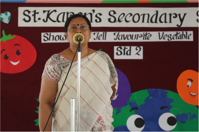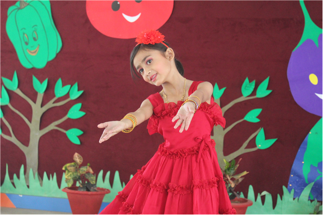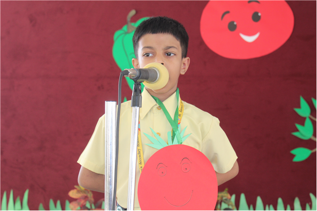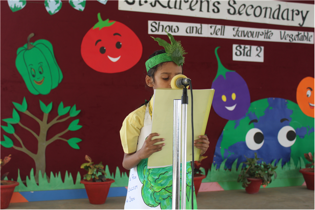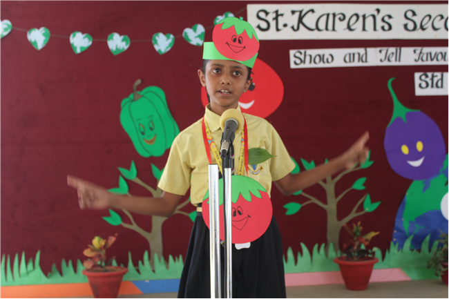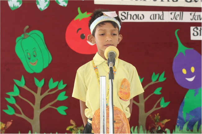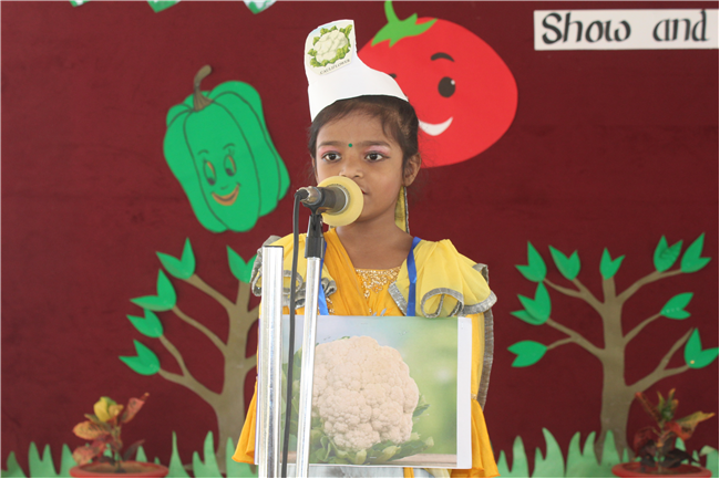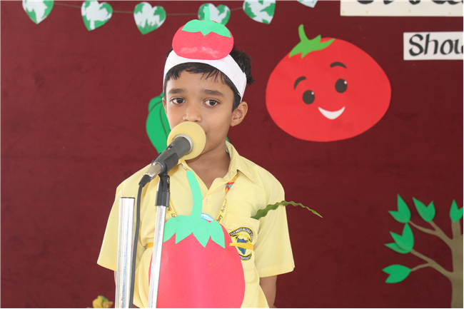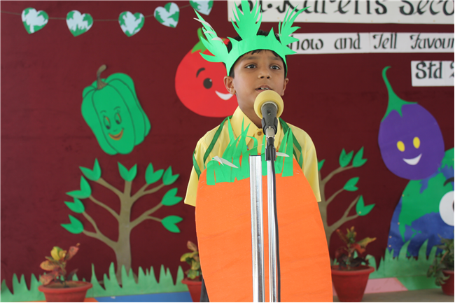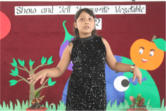 Description: Students of Std 2 had Show and Tell Competition. The first round was conducted in the respective classes. Two finalists from each section had performed in the final round . Topic was vegetable and their benefits . Students were dressed up as different vegetables. All three judges and Soma ma’am appreciated the efforts of students. The program was really a mesmerizing experience for all of them.