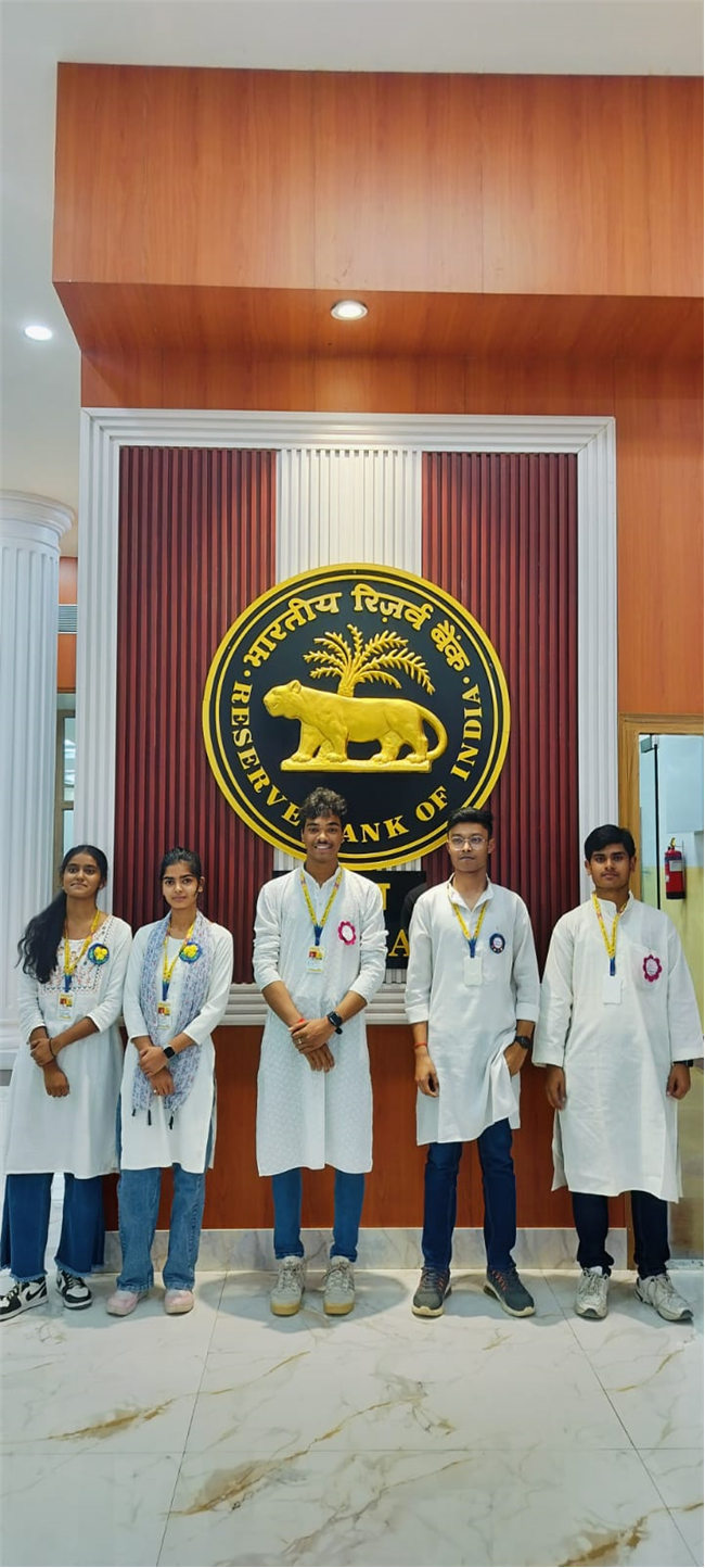 On 29th February,five Economics students from Class 11 had the enriching opportunity to visit the Reserve Bank of India as part of the celebration for Financial Literacy Week. They showcased a captivating skit and engaged in a stimulating quiz session. Their exceptional performance garnered praise from RBI officials, who rewarded them with medals and laptop bags as tokens of appreciation.