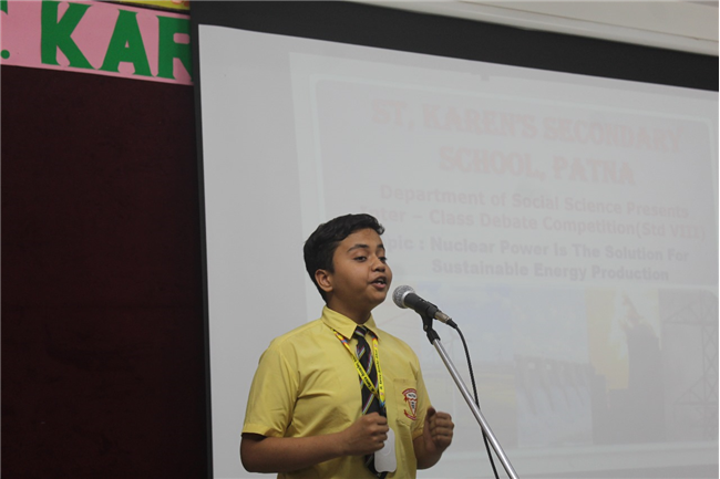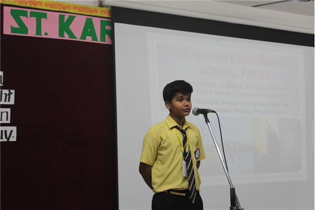Description: In continuation with the Earth Day celebration, Class 8 had a debate competition on the topic 'Nuclear Power is the Solution for Sustainable Energy Production '