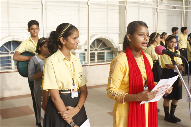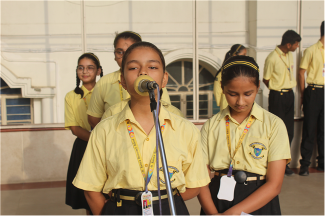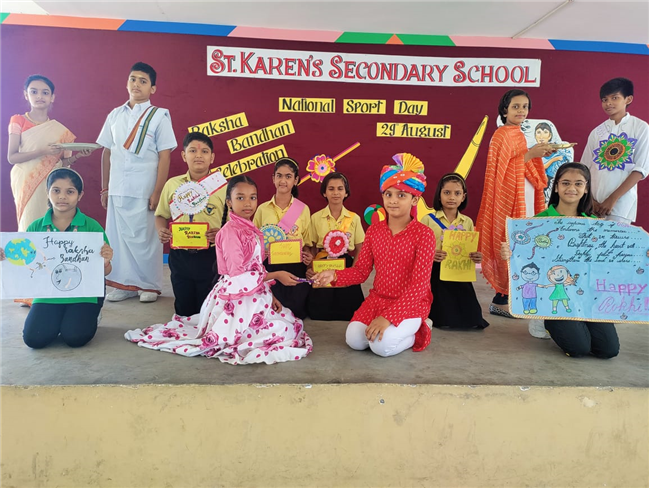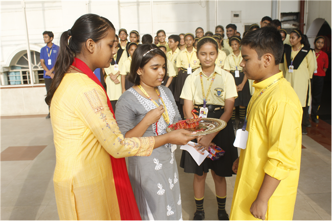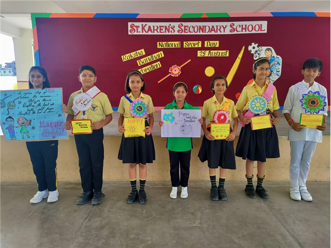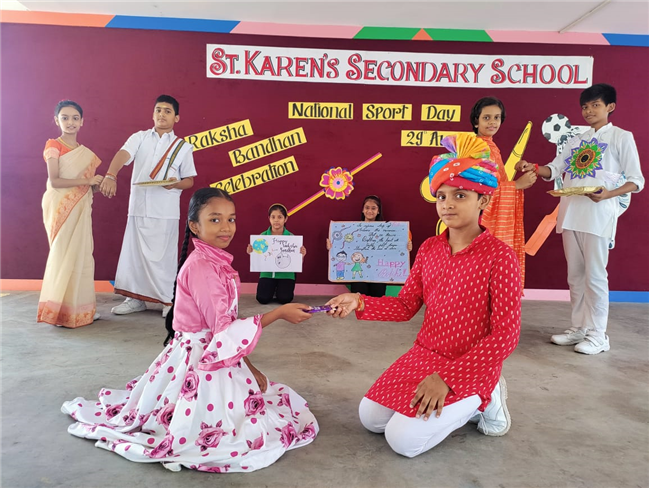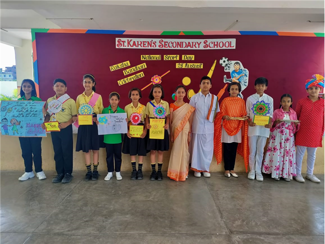 Description: On August 29, 2023, a special assembly took place in both the primary and senior sections to commemorate both National Sports Day and Rakshabandhan. The students delivered a fantastic enactment of the Raksha Bandhan tradition, showcasing its significance. Alongside this, an engaging short quiz was organized to mark the significance of National Sports Day during the assembly.