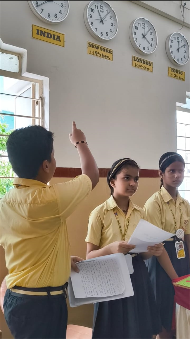 Further more, Std 6 students explained various time zones and the solar system, while class 7 students performed a role play on 'Idgah,' the famous story by Munshi Premchand, in honor of his birthday on 31st July.