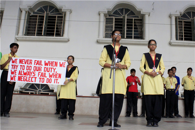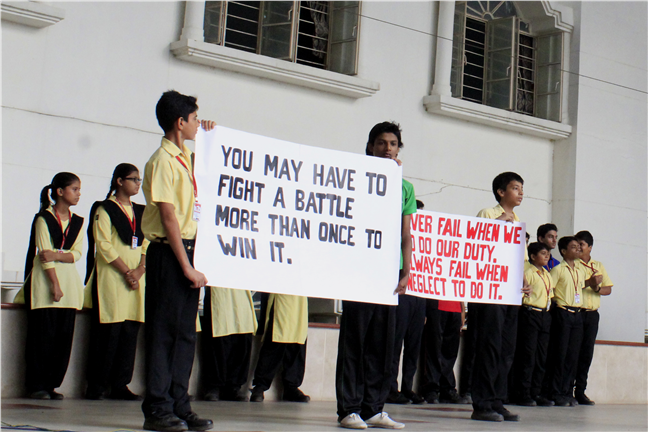 The morning sets the day and the assembly paves the way for our students to rejuvenate their spirits, remain rooted to the moral values and unleash their vitality to channelize their energy in a positive direction. Today's assembly was based on the topic: "YOU MAY HAVE TO FIGHT A BATTLE MORE THAN ONCE TO WIN IT. & WE NEVER FAIL WHEN WE TRY TO DO OUR DUTY.WE ALWAYS FAIL WHEN WE NEGLECT TO DO IT."
