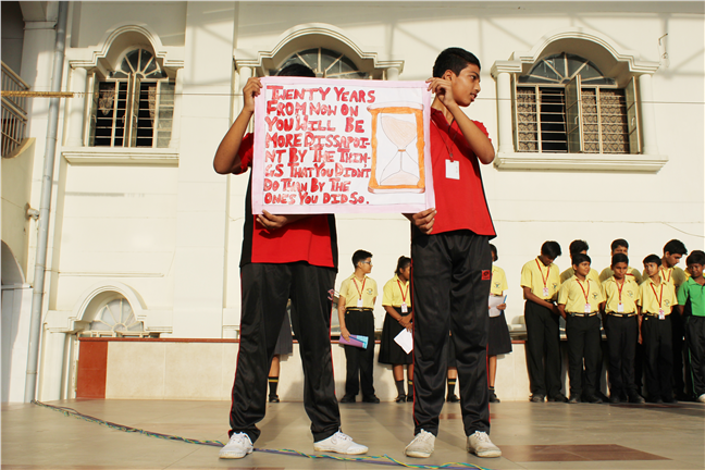 The morning sets the day and the assembly paves the way for our students to rejuvenate their spirits, remain rooted to the moral values and unleash their vitality to channelize their energy in a positive direction. Today's assembly was based on the topic: "TWENTY YEARS FROM NOW ON YOU WILL BE MORE DISSAPOINT BY THE THINGS THAT YOU DIDN'T DO THAN BY THE ONES YOU DID SO."