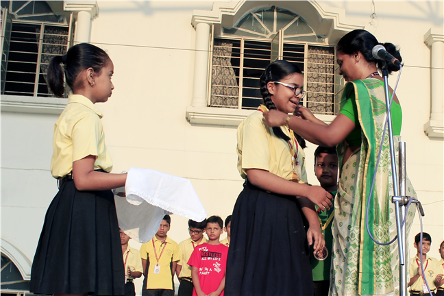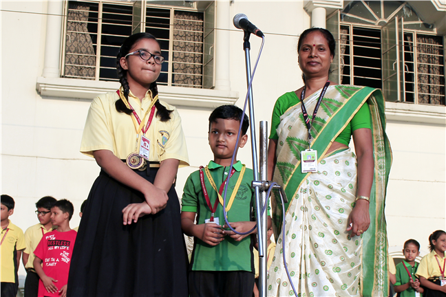 Description: The morning sets the day and the assembly paves the way for our students to rejuvenate their spirits, remain rooted in the moral values and unleash their vitality to channelize their energy in a positive direction. Today's assembly was based on the topic: "RAYAN SINGH II B ANAM FATIMA V C PRIDE of St. Karen's Secondary achieved the gold medal in final round "Spell Bee" contest state level".