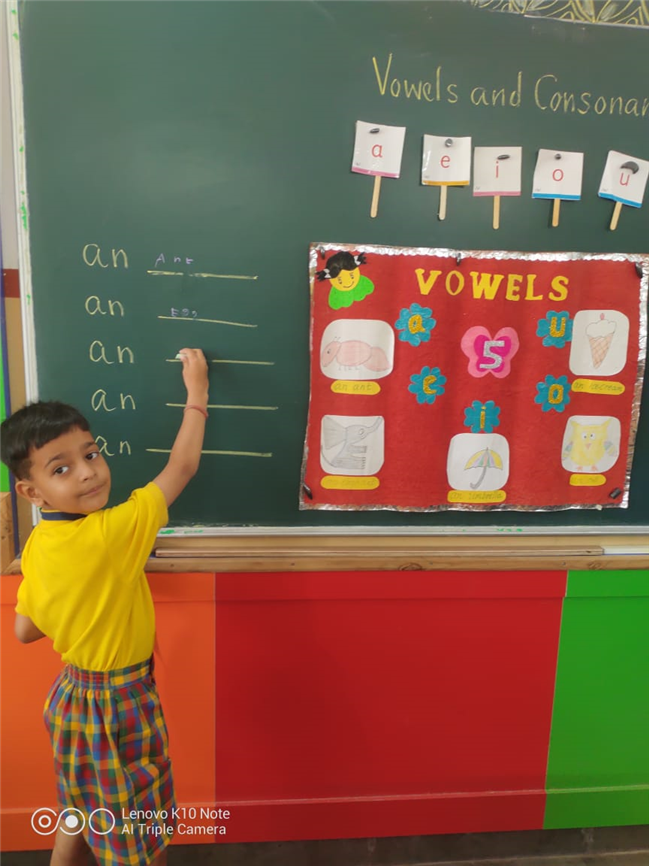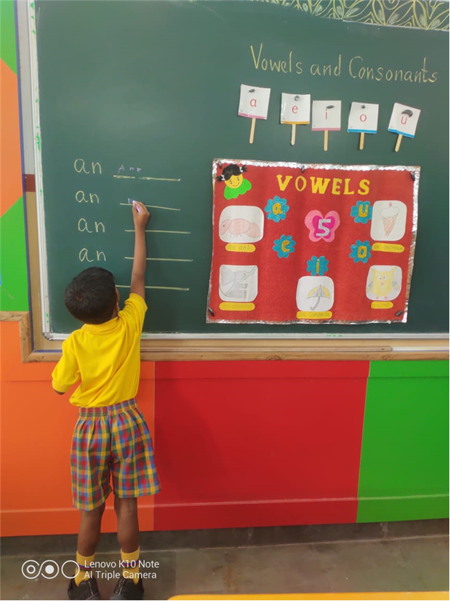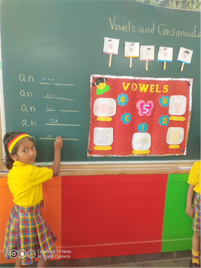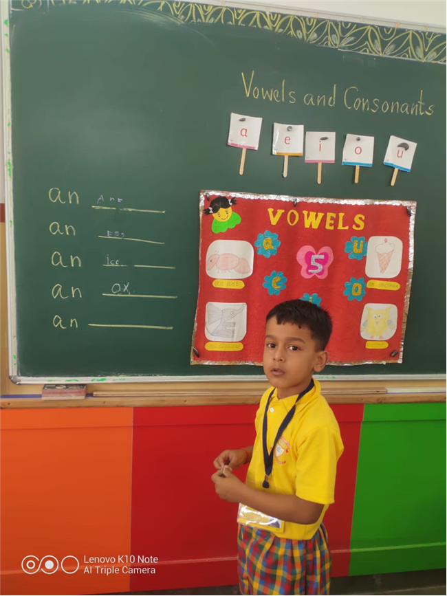 Subject:ENGLISH Topic:Vowels Activity:Vowels and Consonants By Std UKG Teacher: Liju Shibu