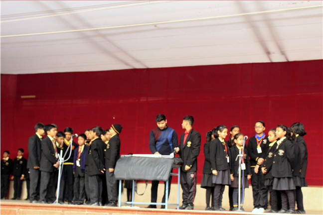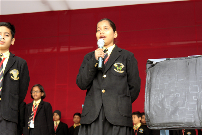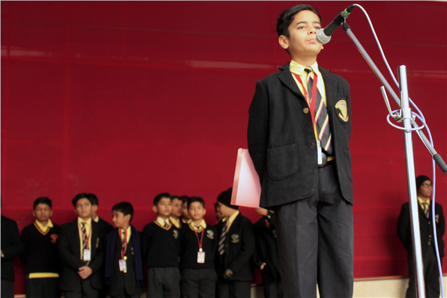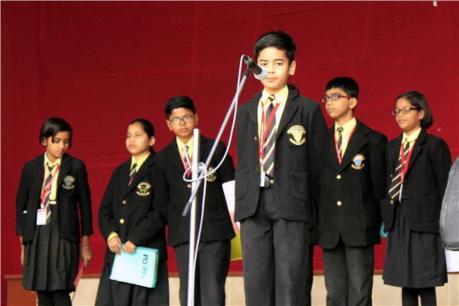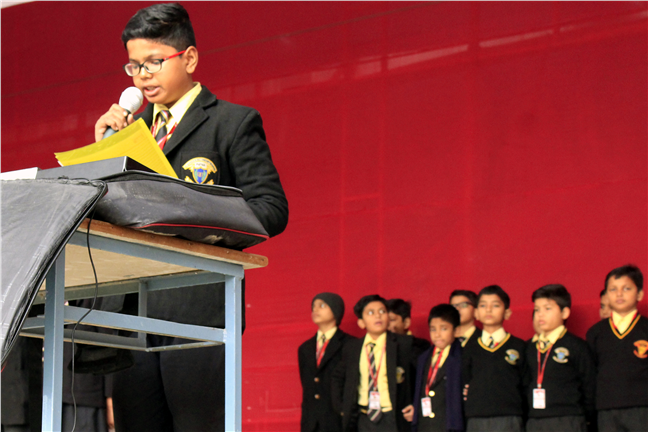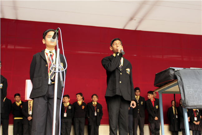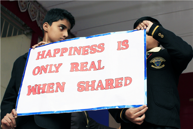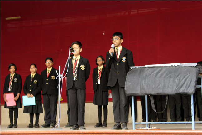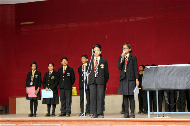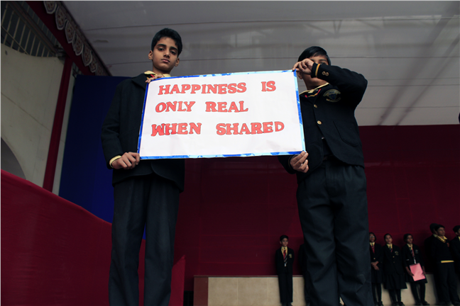 Description: The morning sets the day and the assembly paves the way for our students to rejuvenate their spirits, remain rooted in the moral values and unleash their vitality to channelize their energy in a positive direction. Today's assembly was based on the topic: "HAPPINESS IS ONLY REAL WHEN SHARED".
