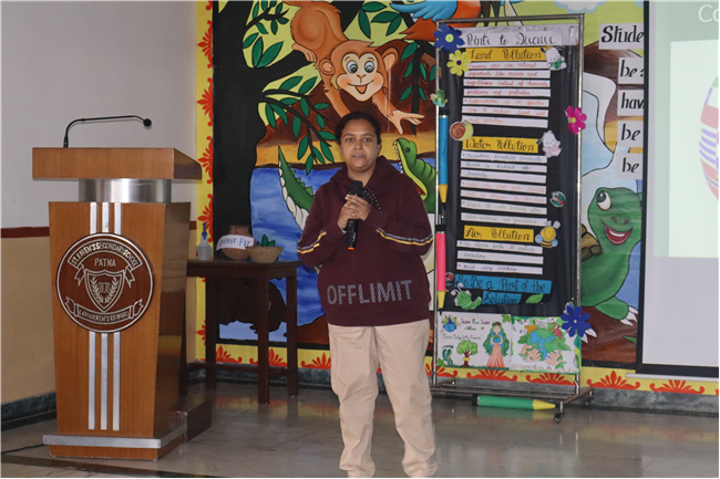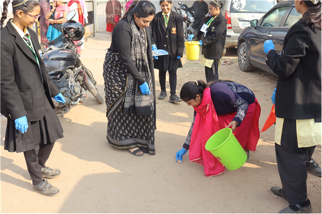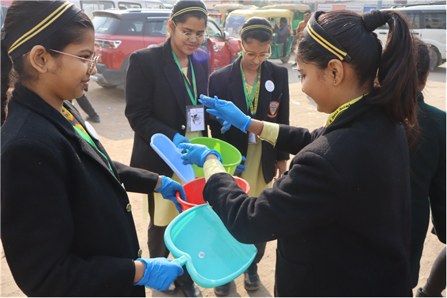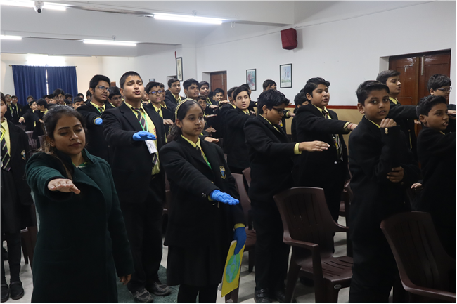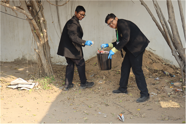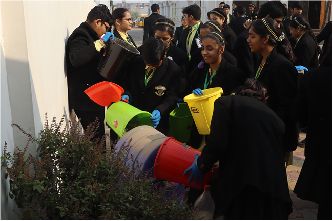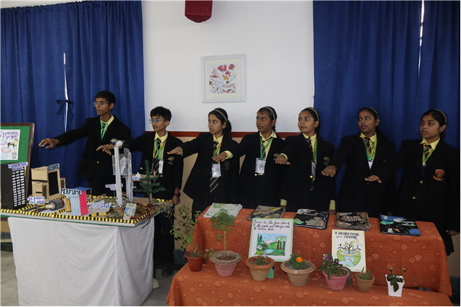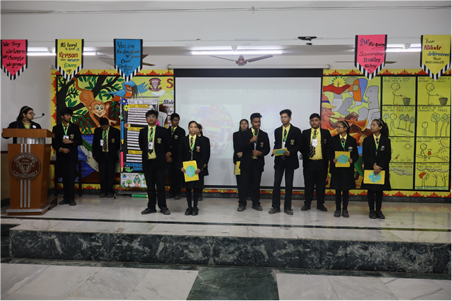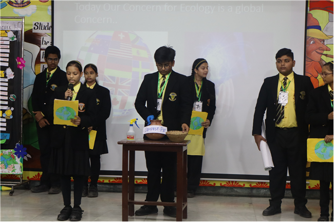 The Eco Club event, anchored by Manas and Devpreeti, celebrated environmental stewardship through a series of informative and engaging activities. The event began with an Environment Prayer led by Saanvi, followed by Bhavna and Smriti’s demonstration on sapling planting and seed bombs. Dikshita and Shatakshi showcased composting techniques, while Vinayak and Abhikshit highlighted the importance of organic farming. Manas and Dheeru presented their innovative Eco Metropolis project, and Nistha and Sharvin introduced a concept of a self-contained home under resource management. Special guest Devopriya Ma’am from Tarumitra delivered an inspiring address, followed by the Eco Club pledge led by Zuha Fatima. The event concluded with an exhibition of Eco Club projects and a collective clean-up drive, promoting sustainable practices and community involvement.