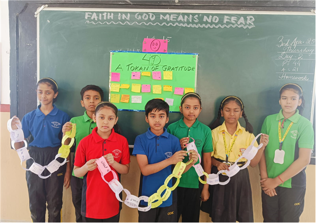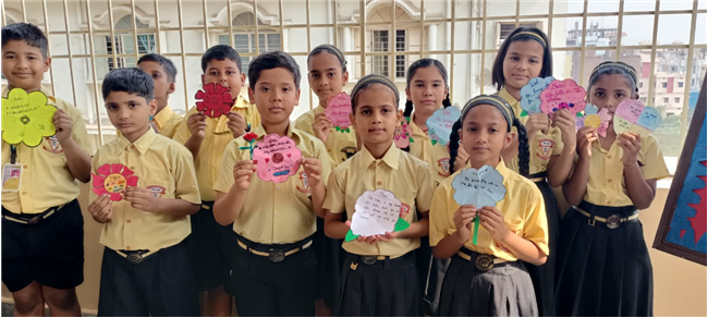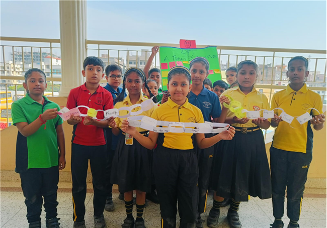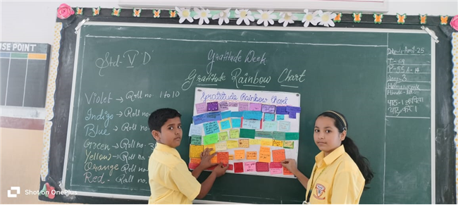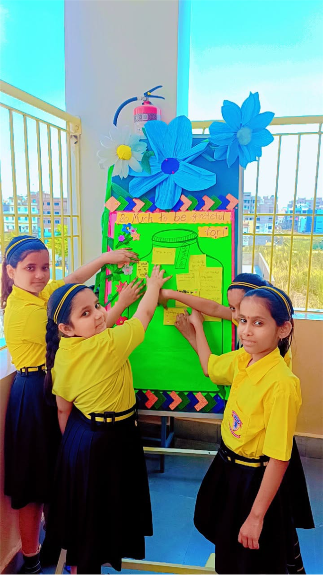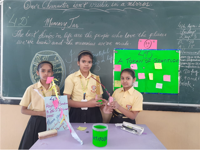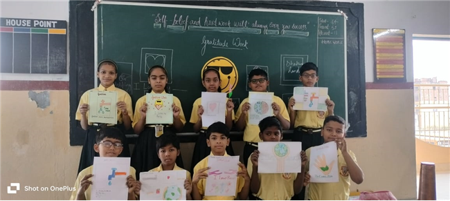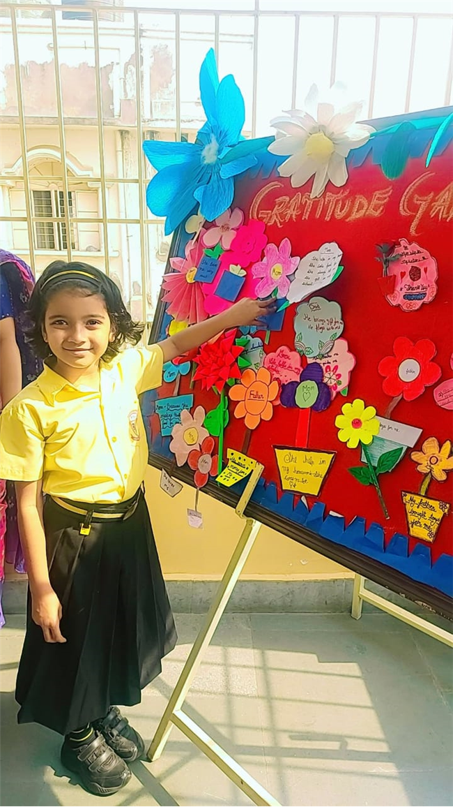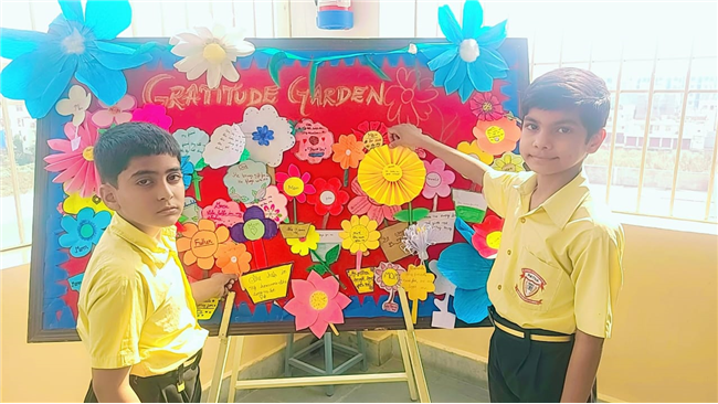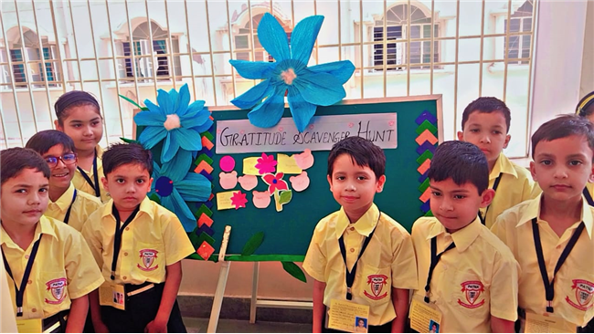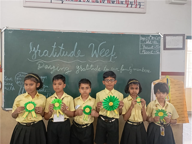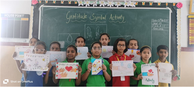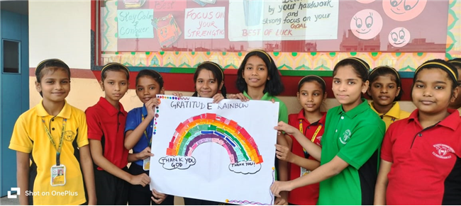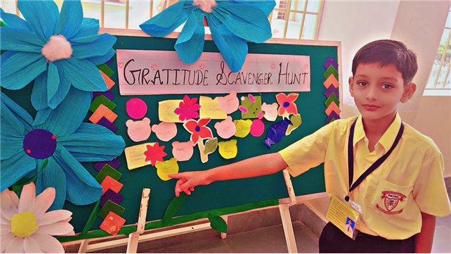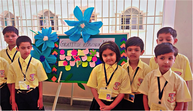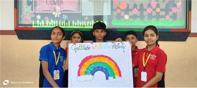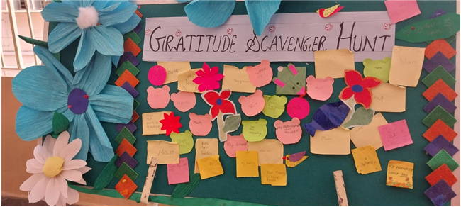 Activities like Gratitude Rainbow Activity , Gratitude Jar Filling , Gratitude Scavenger Hunt Gratitude Garden, Thank you Badges for family members etc were done by the students.