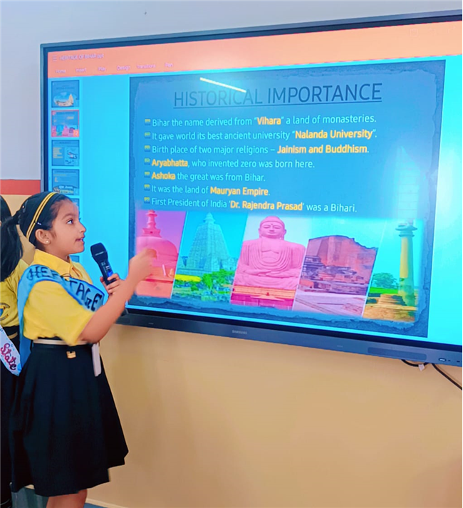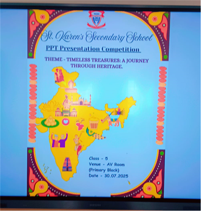The PowerPoint Presentation Competition was organized for Std -5 students on 30th July '25 in the Multi Media Room on the theme “Heritage of India”, aiming to celebrate and showcase the rich cultural and historical diversity of the country. The event witnessed enthusiastic participation from students, who presented the unique heritage, art, culture, and traditions of various Indian states.