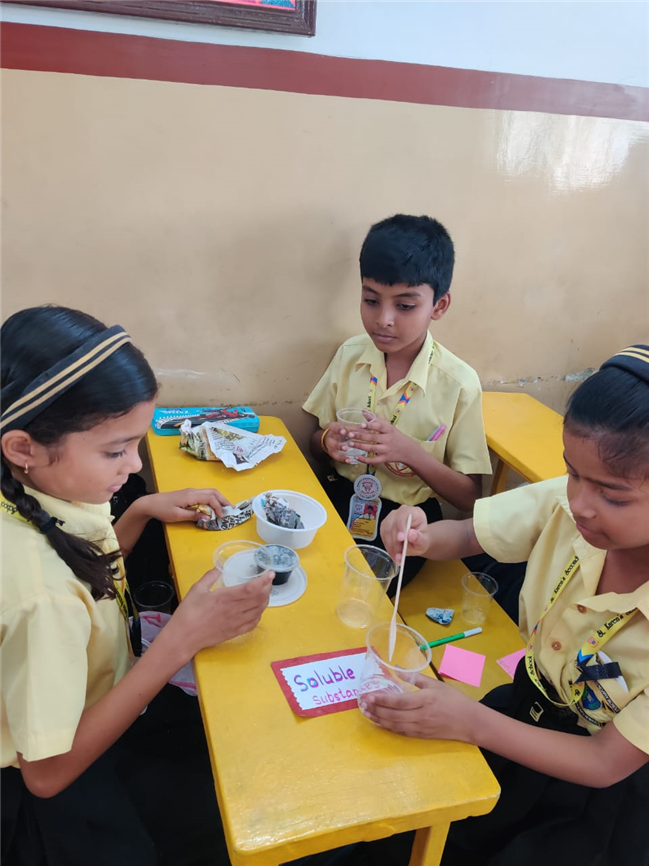 Date: 12th May'25 Std : 4A Science Ch 4 State of Matters Experiential Learning through activity to find soluble and insoluble substances Teacher: Rubi Sinha