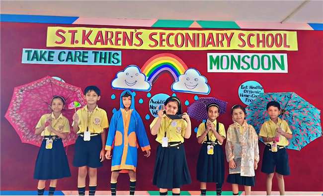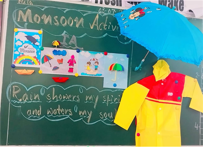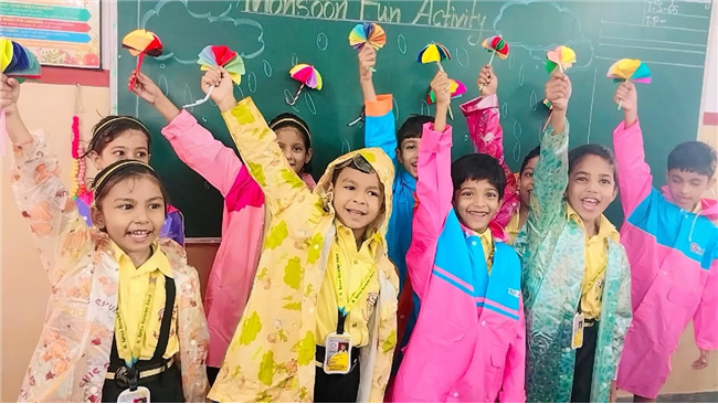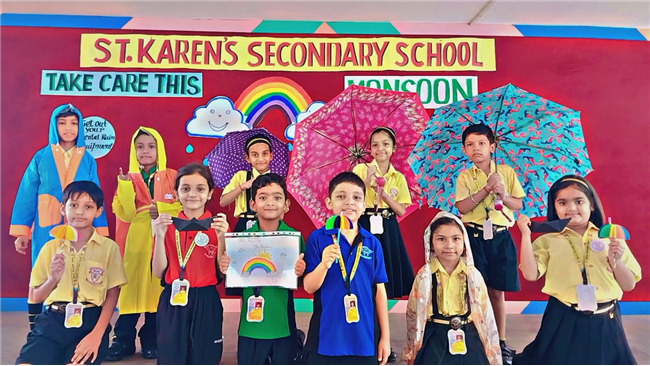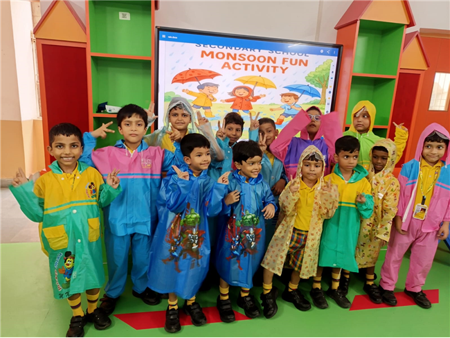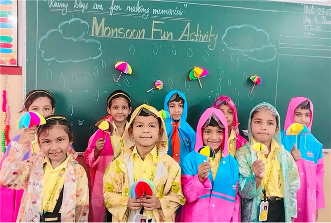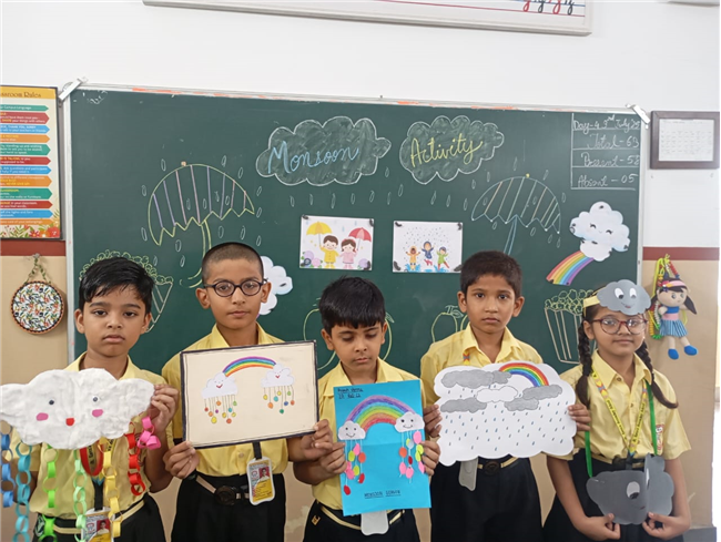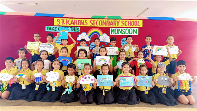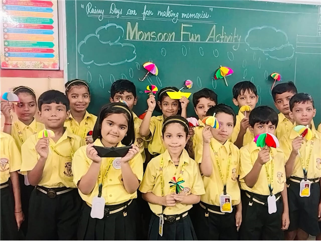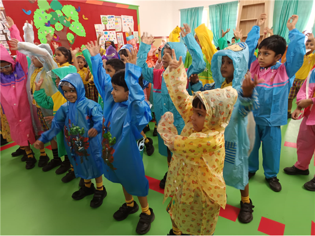 Our School organised Monsoon Fun Activities for Std UKG -3 on 3rd July '25 which turned out to be a delightful celebration of creativity, movement, and seasonal joy. UKG students had head gear activity and fun with raincoat. The vibrant umbrella-making activity of Std -1 sparked artistic expression among younger students,while Std -2 cloud-making craft allowed them to connect with nature and weather in a fun way. The cheerful indoor dance sessions, conducted as "Monsoon Masti Dance Moves", brought smiles to every face of Std -3 students.