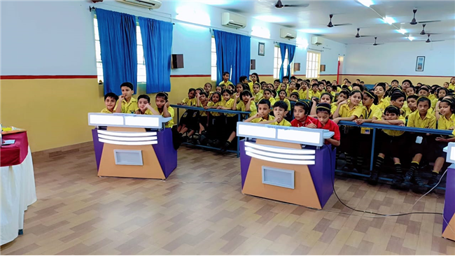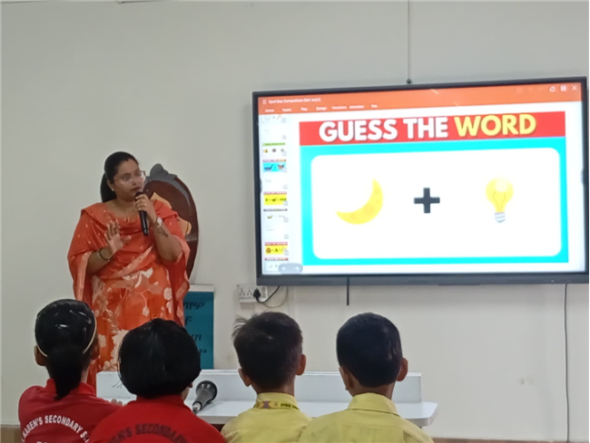 Description: SPELL BEE COMPETITION ( Std 1 &2 ) Our school organised Spell Bee Competition for Std 1& 2 students on 10th July '25 in which the students participated enthusiastically and demonstrated their spelling prowess. Words ranging from simple to challenging were given, testing their linguistic abilities. There were four rounds : 1st Round - Spellathon ( Choose the correct word and spell) 2nd Round - Antonyms Adventure ( Look at the picture and give one antonym of it.) 3rd Round - Image IQ Challenge ( Look at the picture and guess the words.) 4th Round - Buzzer Round ( Find out 10 words from the puzzle given and press the buzzer.) It was a huge success which not only fostered love for Language but also encouraged tiny tots to improve their spellings and build confidence in public speaking.