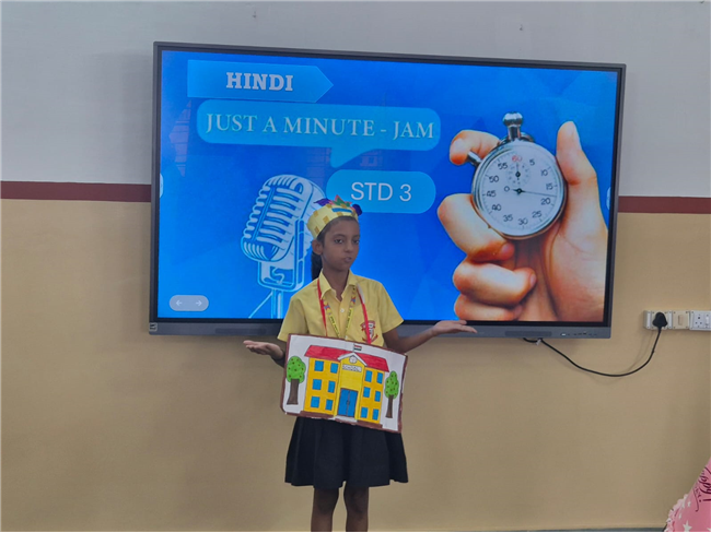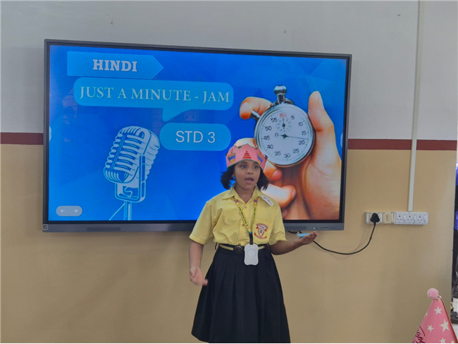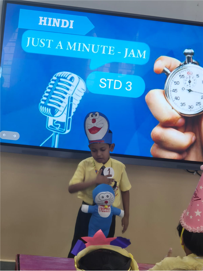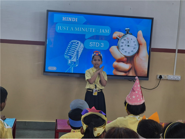 On 11th July 2025, a Hindi JAM (Just A Minute) competition was organized for Grade 3 students in our school. The objective of the competition was to build students’ confidence, enhance public speaking skills, and encourage interest in the Hindi language.