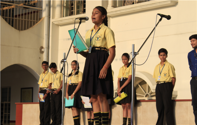 Description: The morning sets the day and the assembly paves the way for our students to rejuvenate their spirits, remain rooted in the moral values and unleash their vitality to channelize their energy in a positive direction. Today's assembly was based on the topic: "BE KIND TO THE ANIMALS"