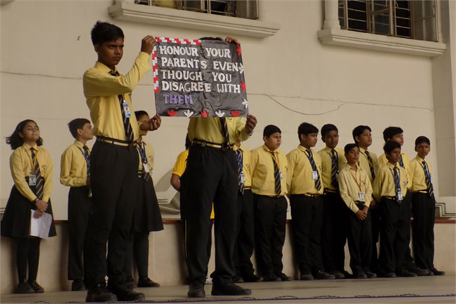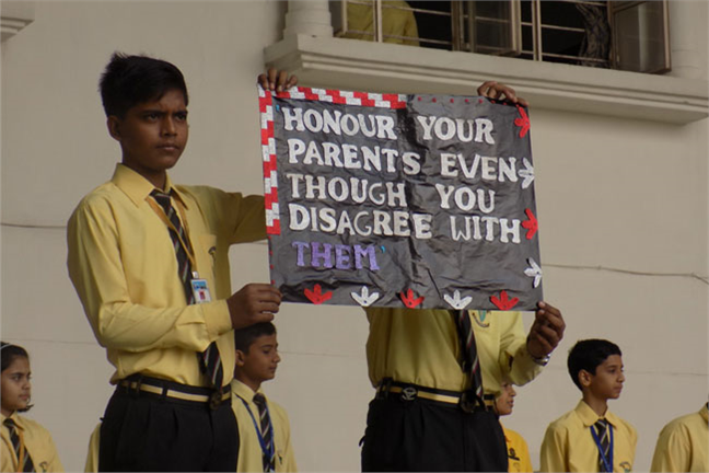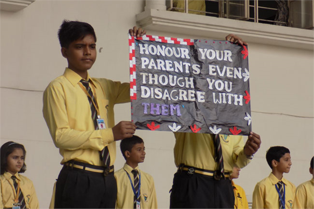 The morning sets the day and the assembly paves the way for our students to rejuvenate their spirits, remain rooted in the moral values and unleash their vitality to channelize their energy in a positive direction. Today's assembly was based on the topic" HONOUR YOUR PARENTS EVEN THOUGH YOU DISAGREE WITH THEM"