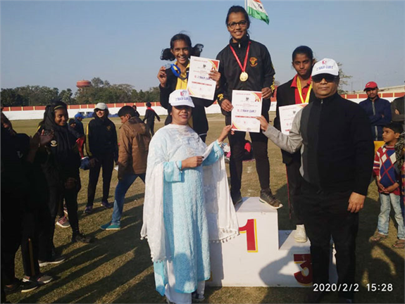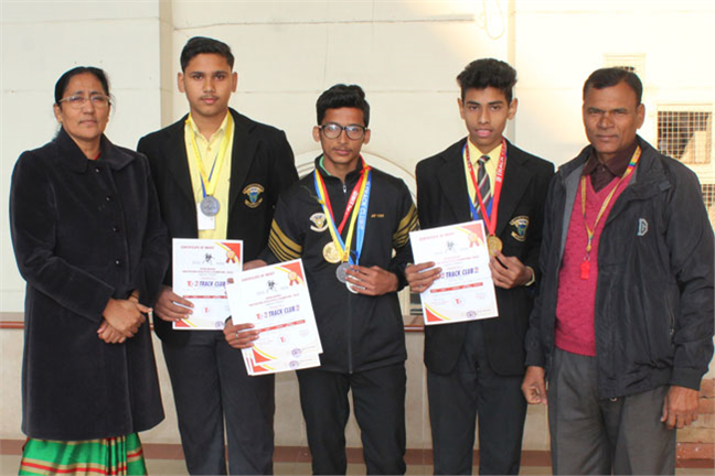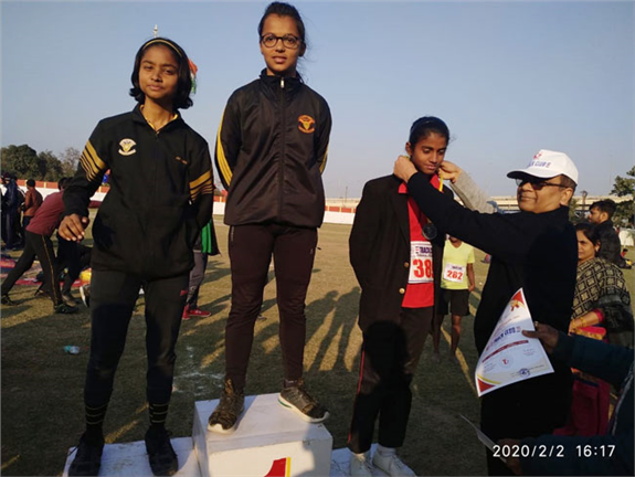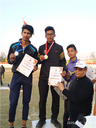 Gold Medal- Akanksha Kumari (7-I) for Short Put, Ujjwal Raj (8-B) for 100 metre race, Adarsh Raj (8-G) for Long Jump.