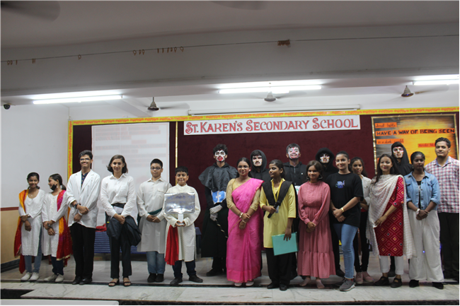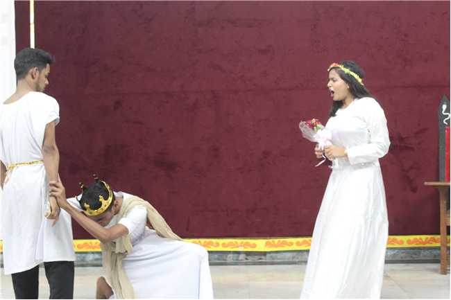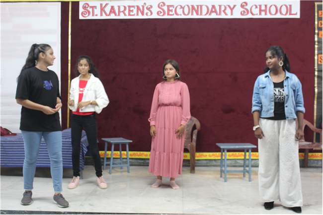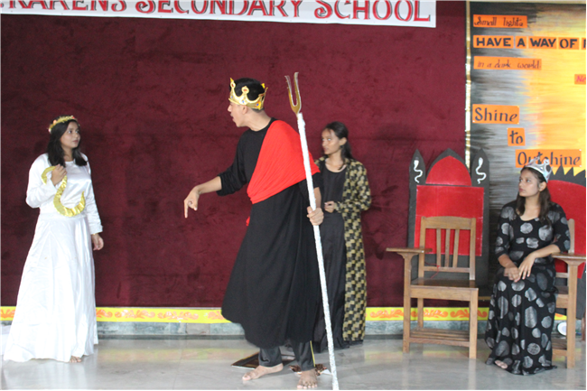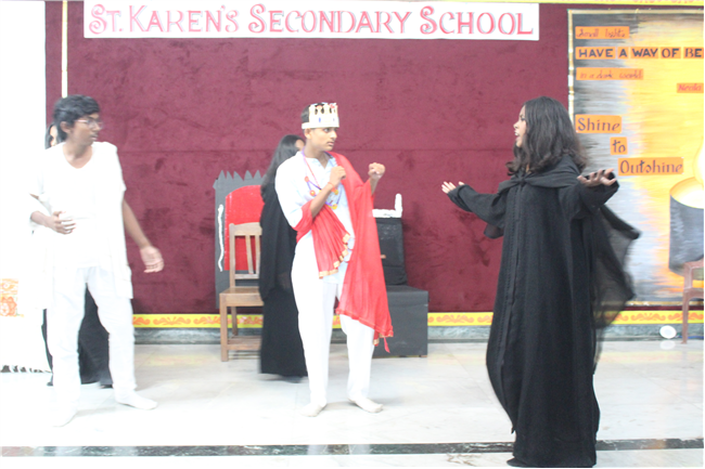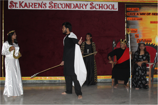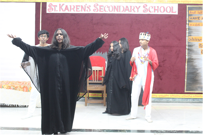 Description: St. Karen's Secondary School organised an Inter-House One Act Play Competition. The 1st prize was won by the Loyalty House for their exhilaratory performance. The 2nd prize was won by the Faith House and 3rd by Truth House. The actors depicted different dramas from Hamlet and Greek Mythology; they also brought out social issues like the effects of Social media on the lives of teenagers.