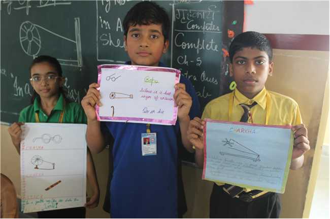 Std-3 Sketch of belonging of Gandhiji with a slogan.