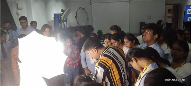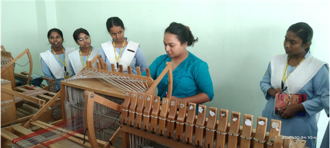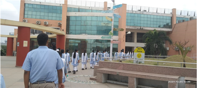 Description: Class 12 painting stream students visited NIFT to explore design as a career. During their visit, they toured the design studios, where they observed students involved in creative processes such as sketching, fabric designing, and garment creation. They were given a comprehensive overview of the stages involved in a design project, from initial conceptualization to the final product. The fusion of traditional techniques with modern technology in fashion design was particularly intriguing. The students also visited the textile department, where a live weaving demonstration showcased the craftsmanship of working on a loom. Faculty and students emphasized the significance of textiles, natural fibers, and sustainable materials in contemporary fashion.