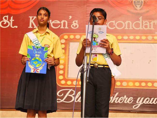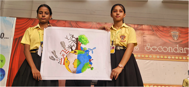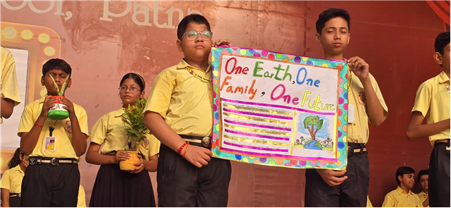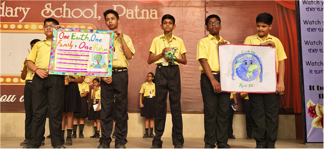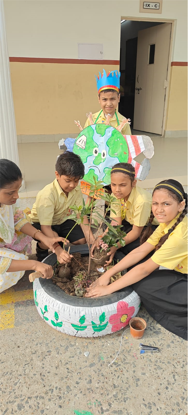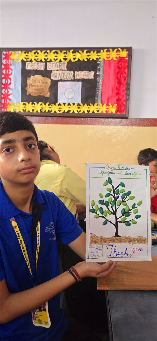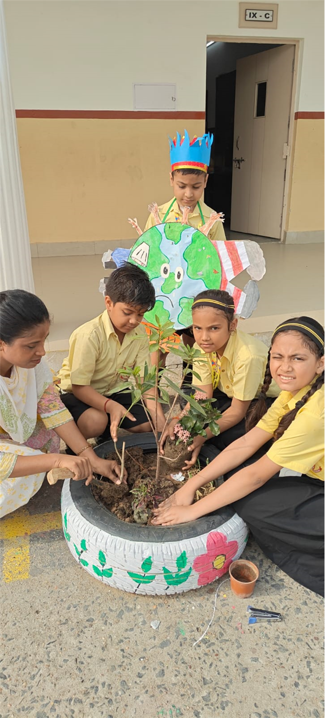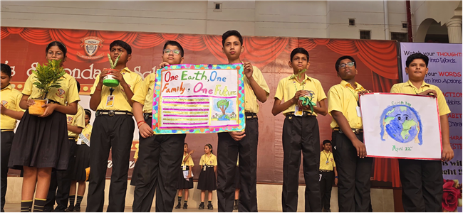Description: Earth Day was celebrated at our school with the aim of raising awareness among students about the importance of environmental conservation and encouraging them to take conscious steps toward saving our planet. The day began with a thoughtful and inspiring morning assembly conducted by the students of Class 7, setting the tone for a day dedicated to sustainability and eco-awareness. A variety of engaging activities were organized across different grades to instill a sense of responsibility and creativity in our young learners: Class I created beautiful and functional dustbins using waste materials, promoting the idea of reusing and recycling. Classes II and III took part in a vibrant plantation drive, learning the value of greenery and nurturing nature. Classes IV and V showcased their creativity through craftwork using old newspapers, giving new life to what is usually discarded. Classes VI and VII curated a Green Art Gallery, displaying artwork centered around nature and sustainability. Students of Classes VI to VIII also participated in an engaging Earth Day Quiz, testing their knowledge about the environment. Senior students from Classes X and XII took part in a stimulating debate on pressing environmental issues, showcasing their critical thinking and public speaking skills. The celebration was not just an event but a step forward in our collective journey towards making the Earth a better place for future generations.