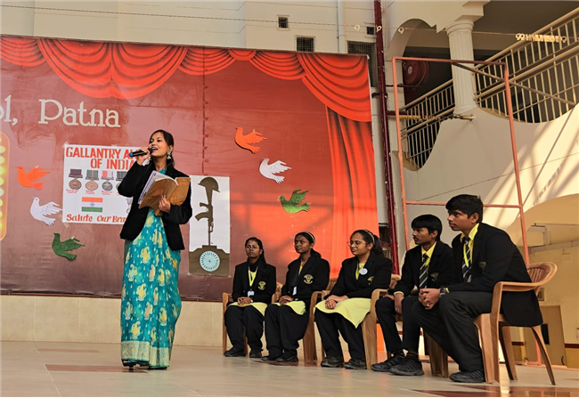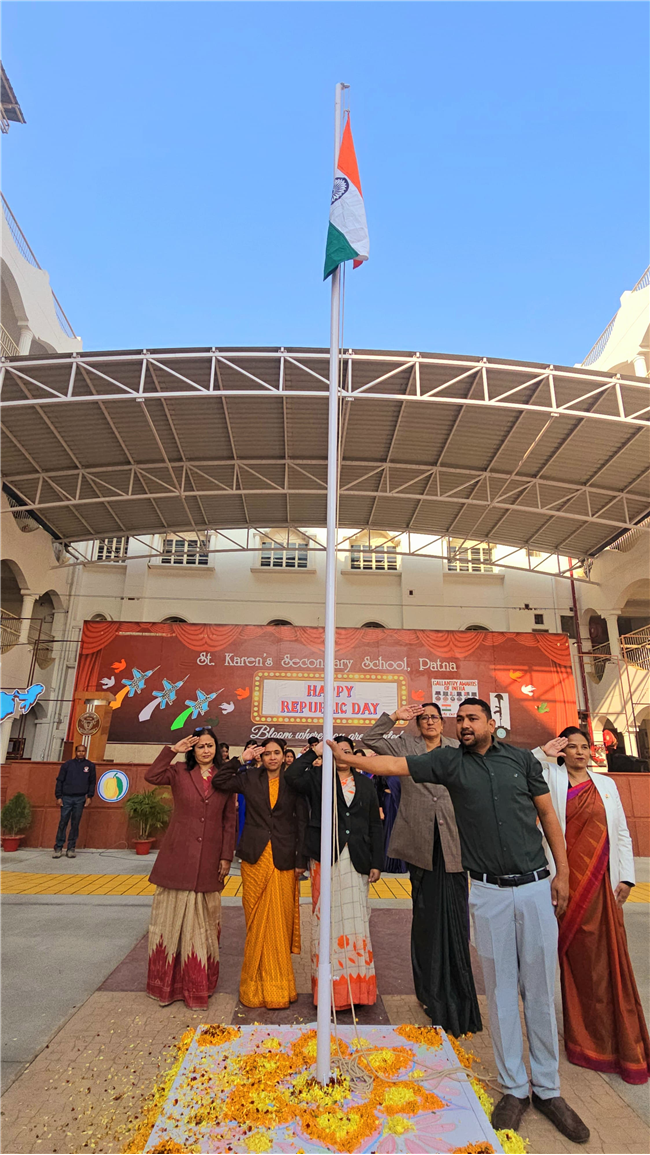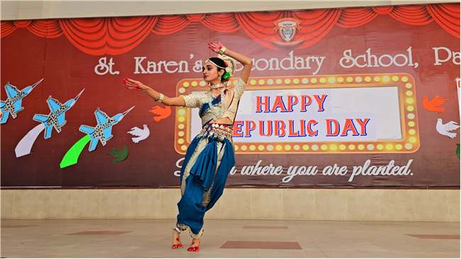 Description: Our school celebrated Republic Day with great enthusiasm. The Principal, Supervisor of Schools, Vice Principal, and coordinators hoisted the flag. The event commenced with inspiring speeches by the Principal and Shefali Ma'am. Students presented a captivating play depicting the significance of being a republic, followed by a melodious choir performance and a vibrant dance showcasing India’s rich heritage.