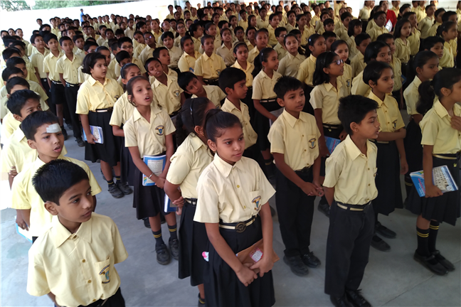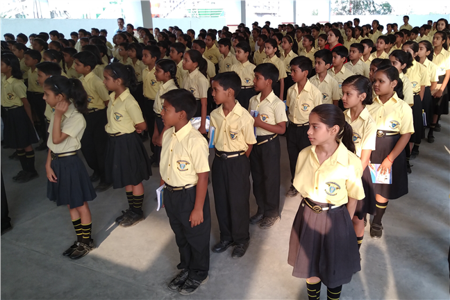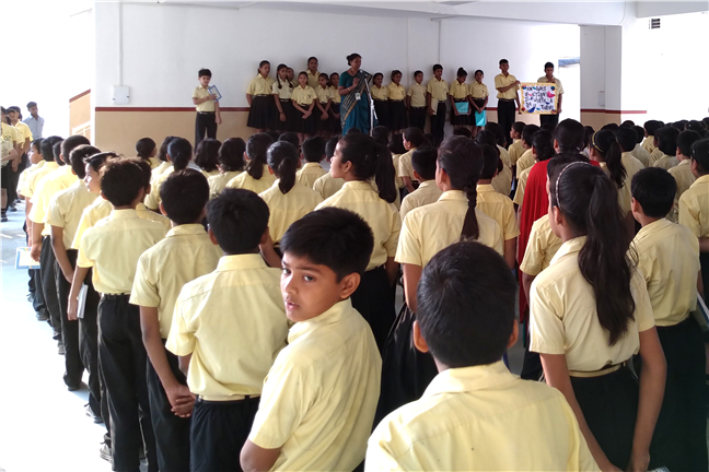 Description: The morning sets the day and the assembly paves the way for our students to rejuvenate their spirits, remain rooted in the moral values and unleash their vitality to channelize their energy in a positive direction. Today's assembly was based on the topic: "AN OUNCE OF ACTION IS WORTH A TON OF THEORY."