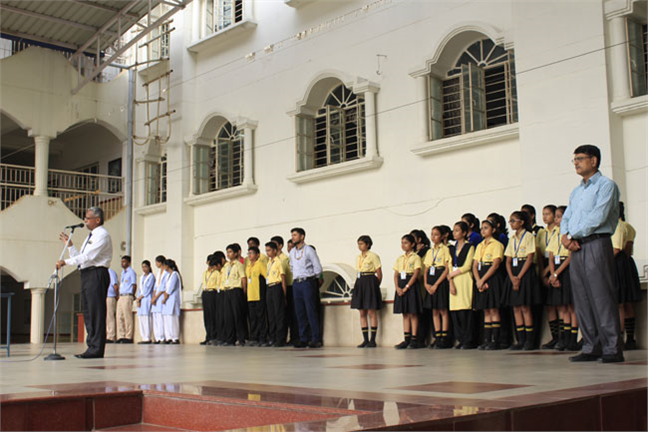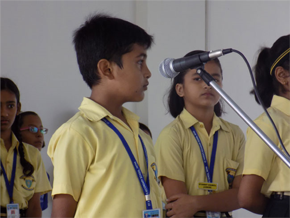 Description: The morning sets the day and the assembly paves the way for our students to rejuvenate their spirits, remain rooted in the moral values and unleash their vitality to channelize their energy in a positive direction. Today's assembly was based on the topic: "TO LIVE A CREATIVE LIFE, WE MUST LOOSE OUR FEAR OF BEING WRONG" AND " SAVING THE PLANET - A VOW."