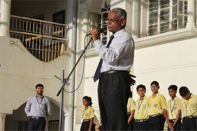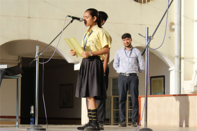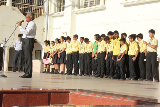 Description: The morning sets the day and the assembly paves the way for our students to rejuvenate their spirits, remain rooted in the moral values and unleash their vitality to channelize their energy in a positive direction. Today's assembly was based on the topic: "THE WORLD IS CHANGE BY YOUR EXAMPLE NOT BY YOUR OPINION." AND "PRACTICE MAKES A MAN PERFECT"
