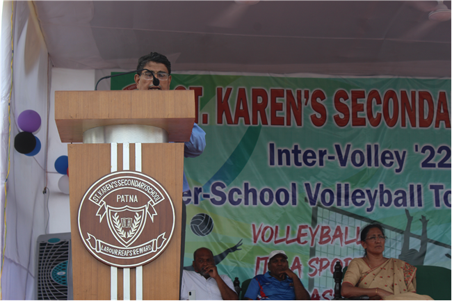 Description: St. Karen’s Secondary School, Patna organised Inter Volley 2022, an inter school volleyball tournament on the occasion of National Sports Day on 29 August 2022. Ten prominent schools from Patna had participated with great enthusiasm and energy. The Chief Guest, Mr. Ramashish Prasad Singh- Secretary, Bihar Volleyball Association, motivated the potent players to follow the most important rule of game and life- discipline. The national referees of Volleyball Federation India- Mr. Dilip Kumar, Mr. Santosh Kumar, Mr. Rajesh Kumar, and Mr. Abhishek Keshav umpired the match minutely. There were two different categories of match; for junior (Grade 9&10) and senior (Grade 11&12). St. Karen’s Secondary School won the first prize and St. Dominic Savio’s School was the first runner up for the senior category. St. Karen’s Secondary School won the first prize and Acharyashri Sudarshan Patna Central School was the first runner up for the junior category. Shashank Kumar of St. Karen’s Secondary School was awarded as the best player in the senior category and Abhigyan Sharma of St. Karen’s Secondary School was awarded as the best player in the junior category.