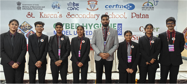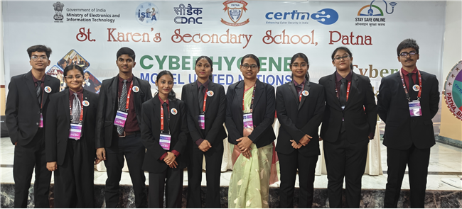 The event was co-hosted by St. Karen’s Secondary School, Patna, and C-DAC Patna on 10–11 October 2025. It served as a dynamic platform for students to deliberate on key topics such as cybersecurity, digital ethics, online privacy, and global internet governance, fostering awareness and leadership among youth in the domain of cyber hygiene and responsible digital citizenship.