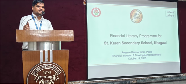 Today, the Reserve Bank of India (RBI) conducted two financial literacy sessions at St. Karen's Secondary School, Khagaul, Patna. The sessions were held separately for teachers and members of the school's Financial Literacy Club.