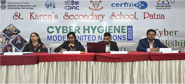 The event was co-hosted by St. Karen’s Secondary School, Patna, and C-DAC Patna on 10–11 October 2025. It served as a dynamic platform for students to deliberate on key topics such as cybersecurity, digital ethics, online privacy, and global internet governance, fostering awareness and leadership among youth in the domain of cyber hygiene and responsible digital citizenship.