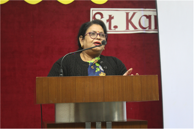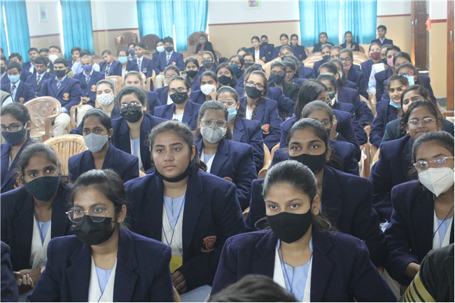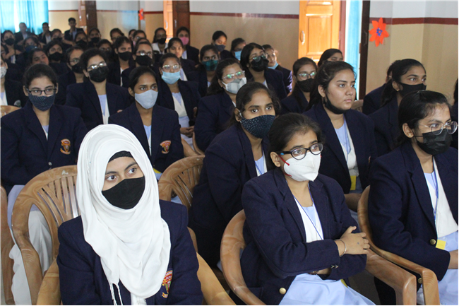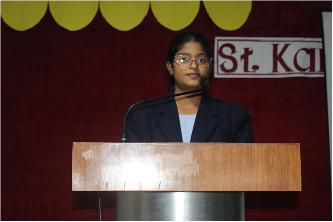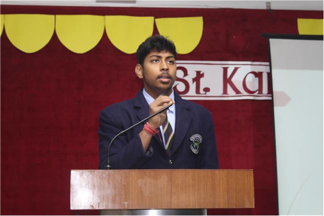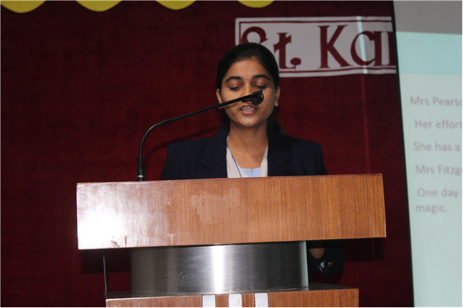 Creative PPTs were presented by the students of Std.11 A, D & G.Three chapters of their English courses were covered viz. Birth by A.J.Cronin, Albert Einstien at school by Patrick Pringle, and Mother's Day (play) by J.B Priestly. The objective of this event was to provide a platform to the students where they could integrate their computer knowledge to learn English. Through this activity, they explored their technical skills and presented their understanding of the chapters through creative and interesting PowerPoint presentations. It was a group activity,120 students were present for this. English teachers along with +2 in charge and the Principal appreciated the students' efforts and encouraged them.