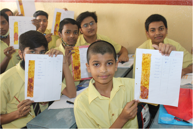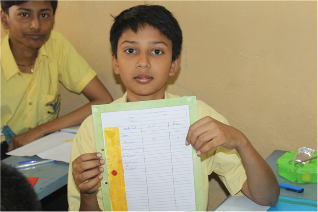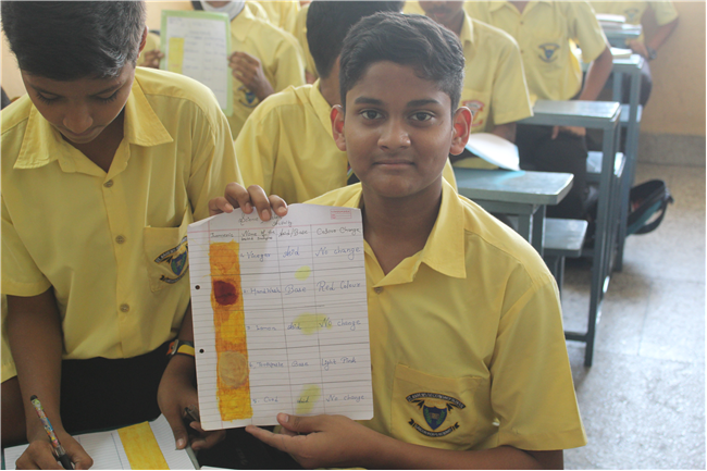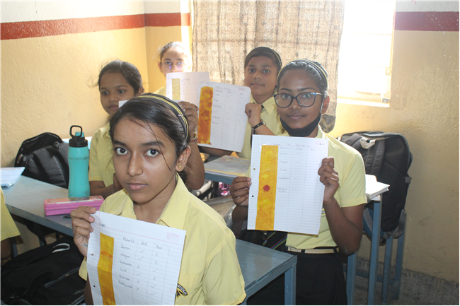 By this activity the students became aware of natural acids and bases used in our daily life and also the colour change in turmeric helped them to identify them as acid or base.