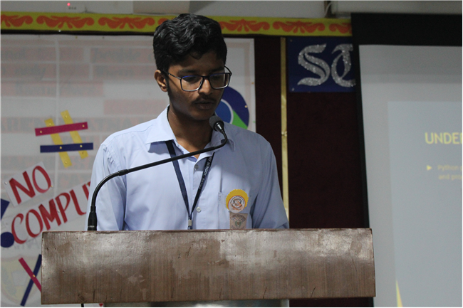 Description: *Live Project Presentation Fully Based on Python* Students of Class XII (Computer Stream) took part in Inter-Class Live Project Presentation Competition on 17th October 2022. Prof. Ajit Singh graced the event by being the chief judge and the moderator of the competition. This competition was organised to enhance the technical skills of the students. Prof. Ajit Singh applauded the students for taking up this challenging and giving their best. He also appreciated the management for organizing such events at school level. His pearls of wisdom, a worthy advice added to the magnificence of the day. He stressed on Android Development, which can lead our country to another level in the field of technology. Five teams comprising five students participated in the competition. Winners were awarded with a certificates of appreciation.