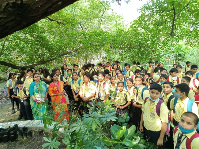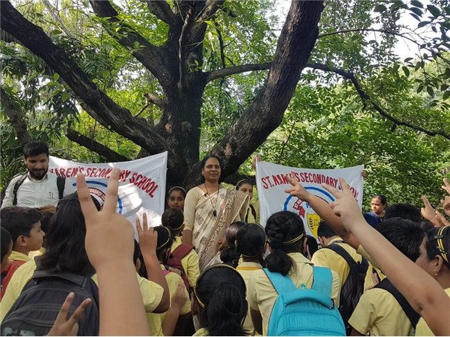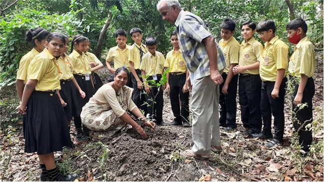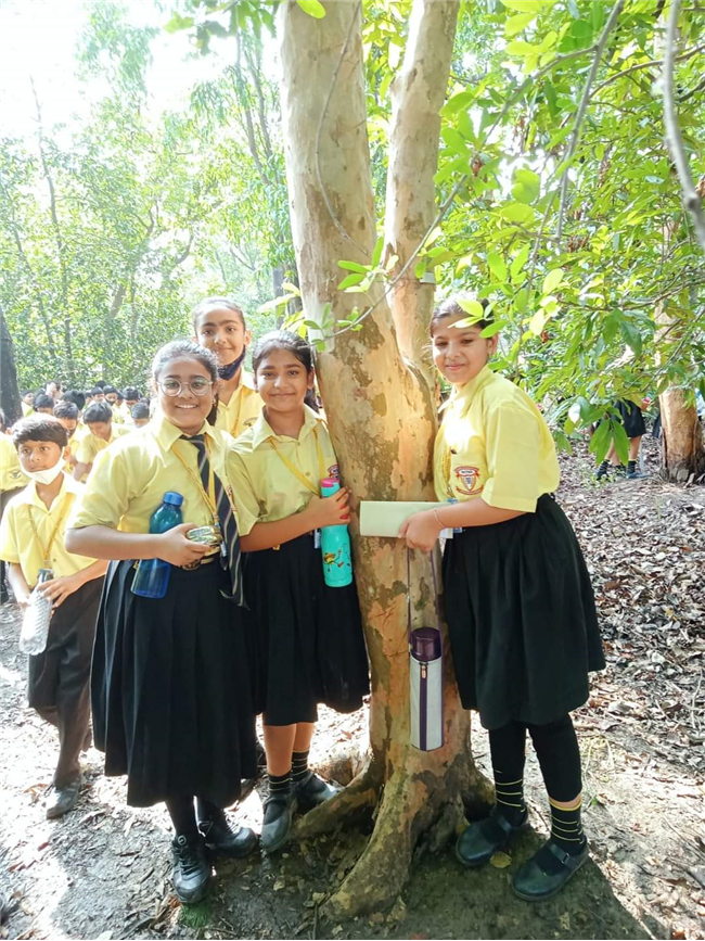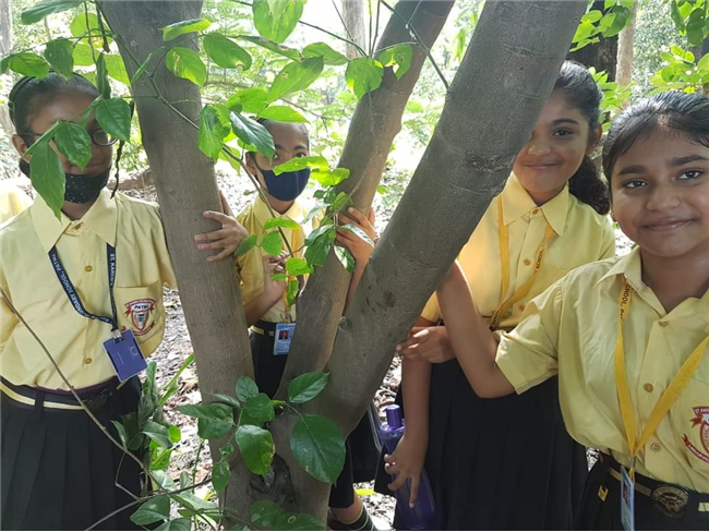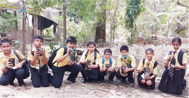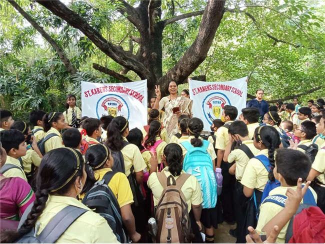 Description: St. Karen's Secondary School (Khagaul) participating in the Tarumitra Van Mahotsav. Right from Nature meditation, forest bathing, tree hugging, tree secret sharing, plantation of arjun sapling, potting work for genetic nursery, seed & shell collection, collecting rice for bird feeders, data entry of rare & medicinal trees of Tarumitra forest, distributing plants & seeds to locals (Adarsh Bal Vidyalaya).
