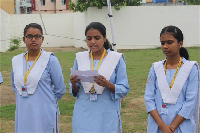 On 1st August students of Std. 12C performed a class activity after completing a chapter of their English course book Journey to the End of the Earth. They did a short presentation which included their reflections, learning outcomes, putting class discussion into practice, taking up the task to protect mother earth and becoming agents of change. They shared that after studying the Chapter they realized that most of our discussions on issues like environmental crises, global warming, climate change, deforestation, saving water, protecting environment and so on begin and end in the classroom itself. So they got an awareness that there's a need of doing something concretely and decided to contribute and brought 12 saplings and planted in the school campus. This noble gesture and good initiative of the students was applauded by everyone.