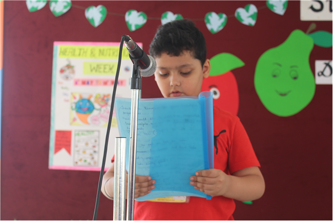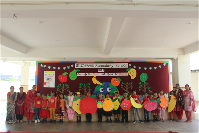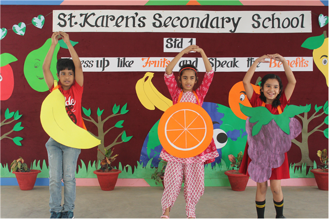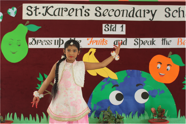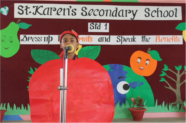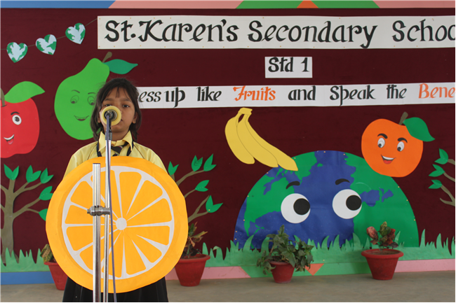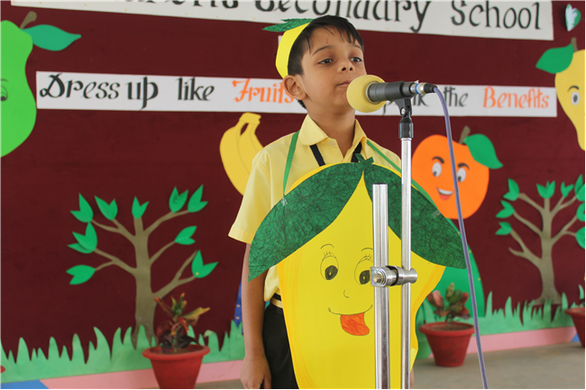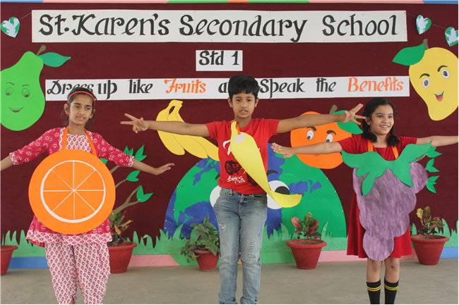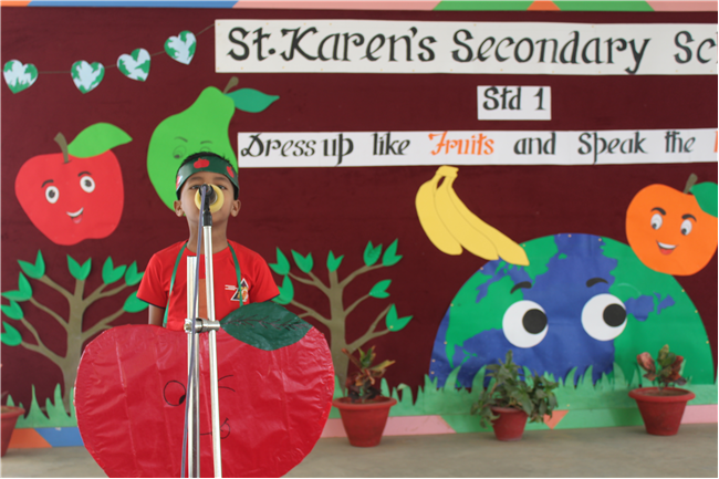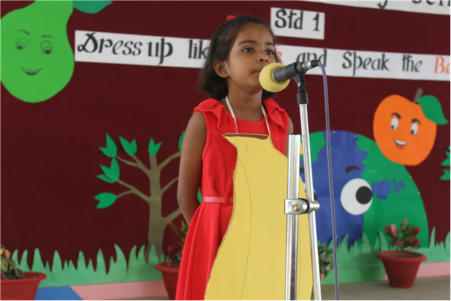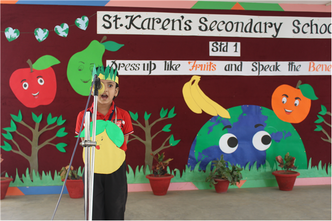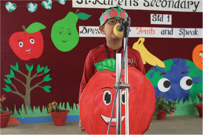 Students of Std 1 had Personification Competition. The first round was conducted in the respective classes. Two finalist from each section had performed in the final round . Topic was fruits and their benefits . Students were dressed up as different fruits . All three judges appreciated the efforts of students. The program was really a mesmerizing experience for all of them.