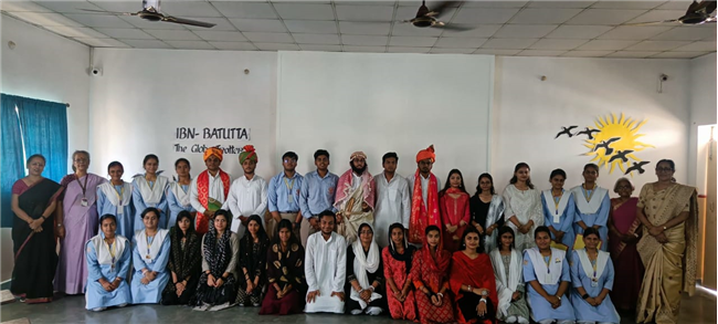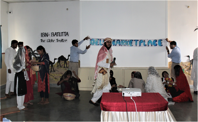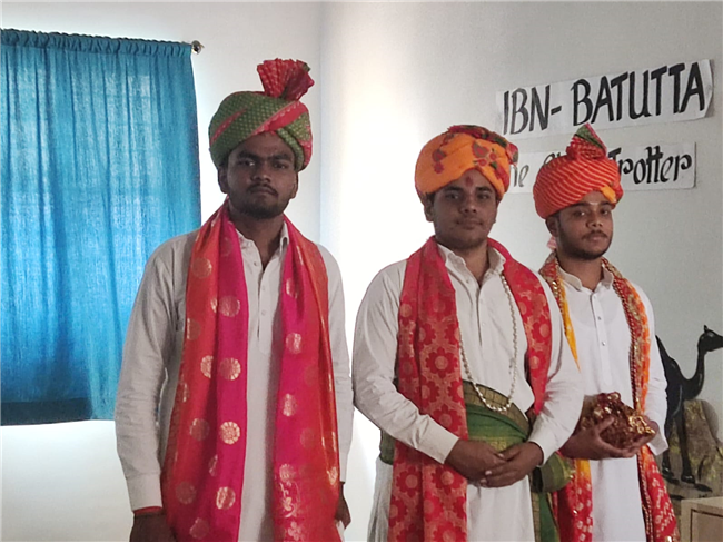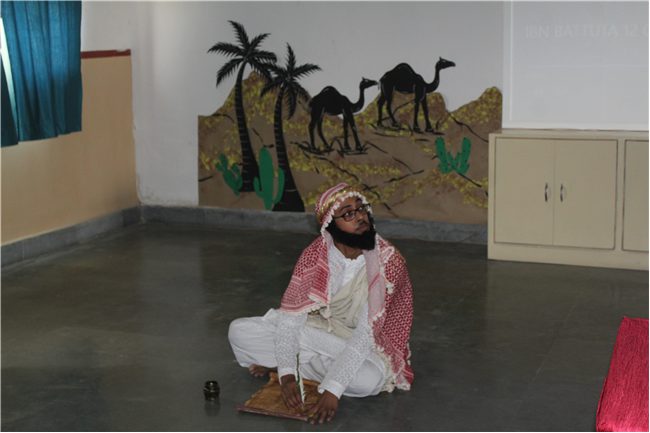 Description: Humanities students of Class 12 presented a short skit on the life and various curious moments of Ibn Batuta when he visited India. He gave us a glimpse of Indian culture, trade and dimension of social and political life of that time. All the students put their heart and soul in presenting the skit which was appreciated by all.