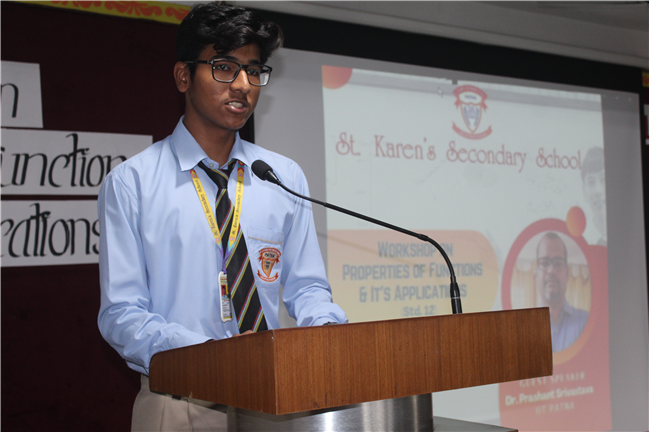 A mathematics workshop was organised for the Class 12 maths students on 17th May in the school auditorium. The resource person was Dr.Prashant Srivastava, Professor of Mathematics, IIT Patna. The topic was Properties of Functions and its Applications. The session was very interesting and interactive. He explained the concepts very well and answered all the questions of the students. It was a very good learning experience for the students