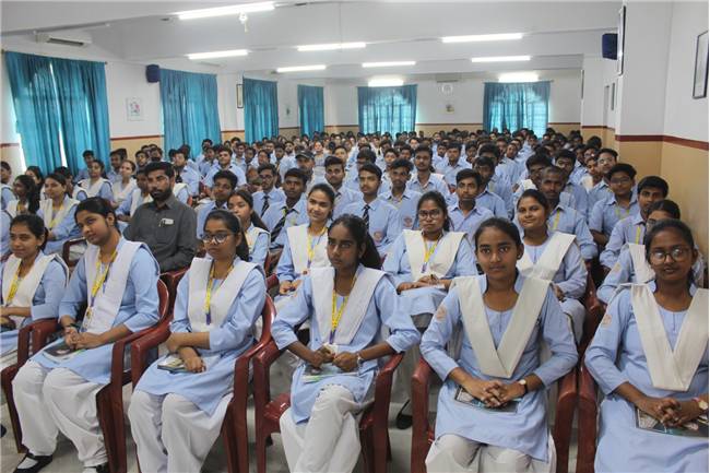 The Speaker of the session was Mr. Debjyoti Das, lawyer and life coach. He explained the various steps to clear the CLAT exam and stressed on the need of daily newspaper reading and communication skills.