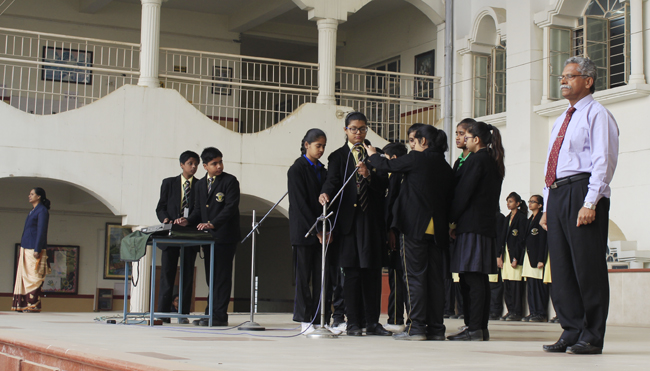 Description: The morning sets the day and the assembly paves the way for our students to rejuvenate their spirits, remain rooted to the moral values and unleash their vitality to channelize their energy in a positive direction. Today's assembly was based on the topic: " Nothing is either good or bad but our thinking makes it so ".