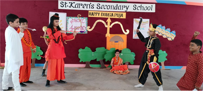 Special Assembly was conducted by Std - 3D students on 19.10.23 on the Topic – Victory of Good Over Evil.