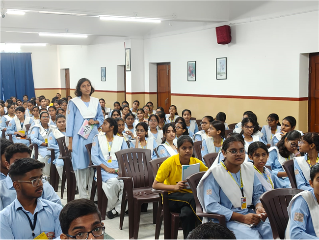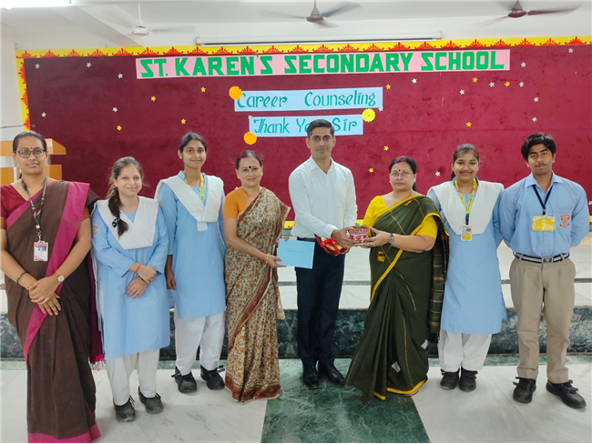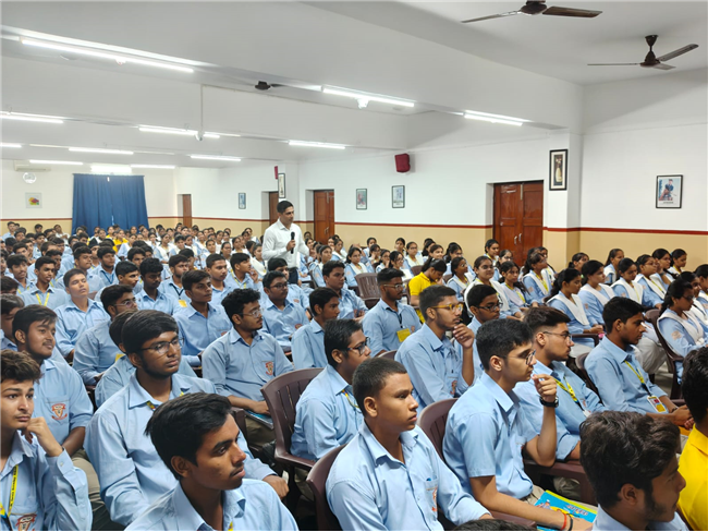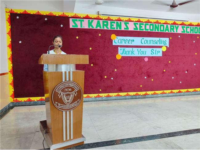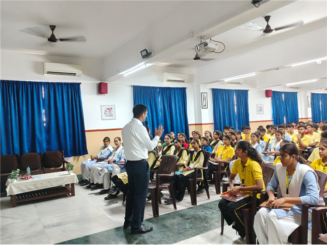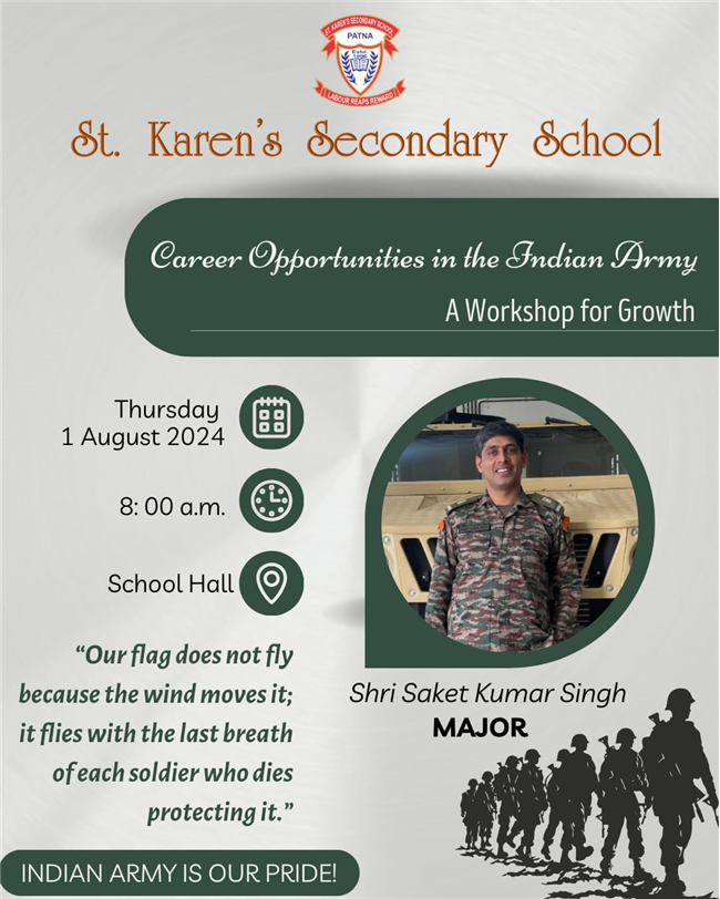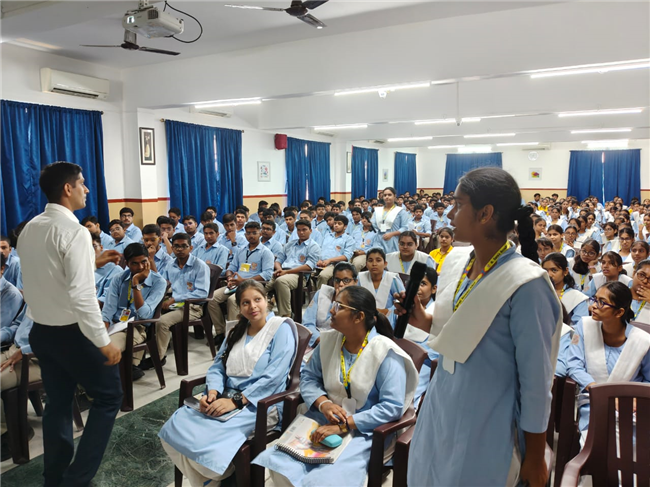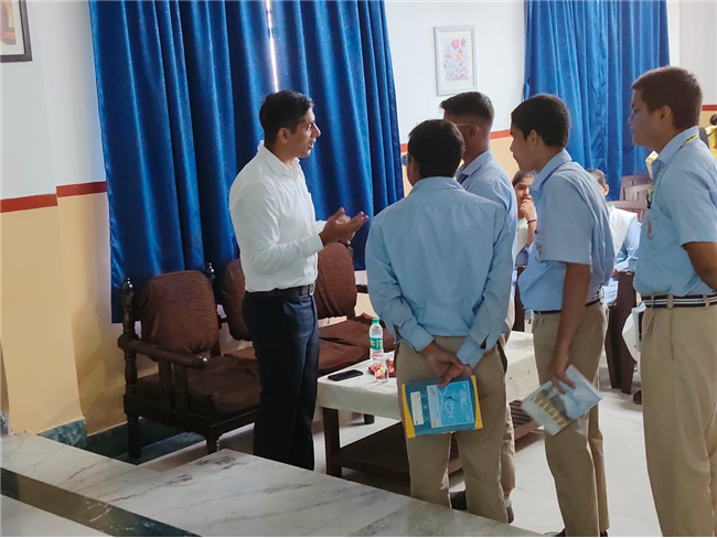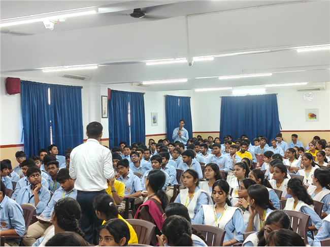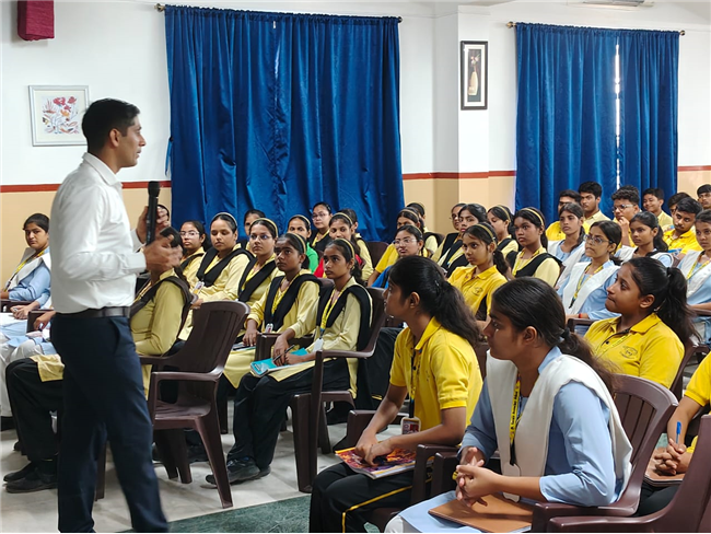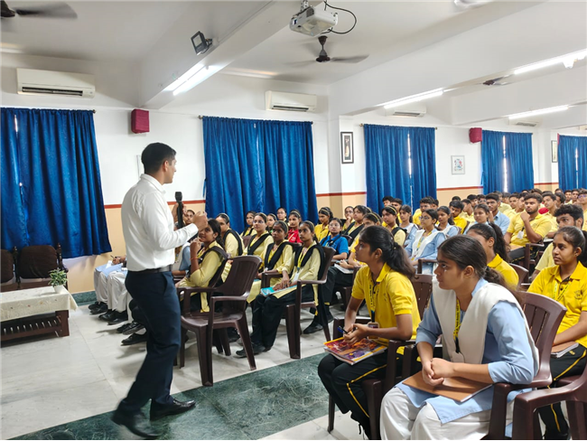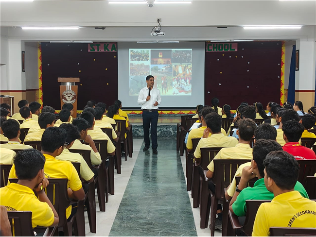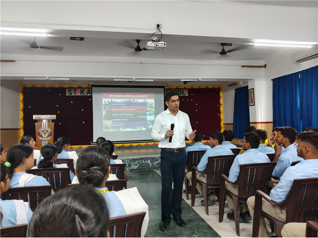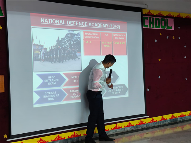 A very engaging career counselling session took place today, where Major Saket Kumar Singh spoke to students from Class X, XI, and XII. He inspired them to consider a career in the army, highlighting the benefits and detailing the eligibility criteria for joining the Army, Navy, and Air Force. He also provided valuable insights on how to prepare for the entrance tests.