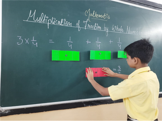 Description: Class Activities were done by the students for concept Building of Multiplication of Fractions by repeated addition method.