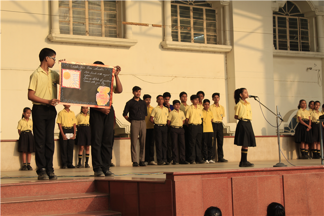 Description: The morning sets the day and the assembly paves the way for our students to rejuvenate their spirits, remain rooted to the moral values and unleash their vitality to channelize their energy in a positive direction. Today's assembly was based on the topic: "Create your own Sunshine ".