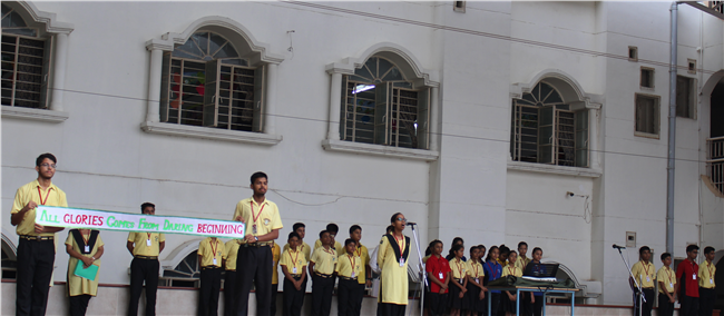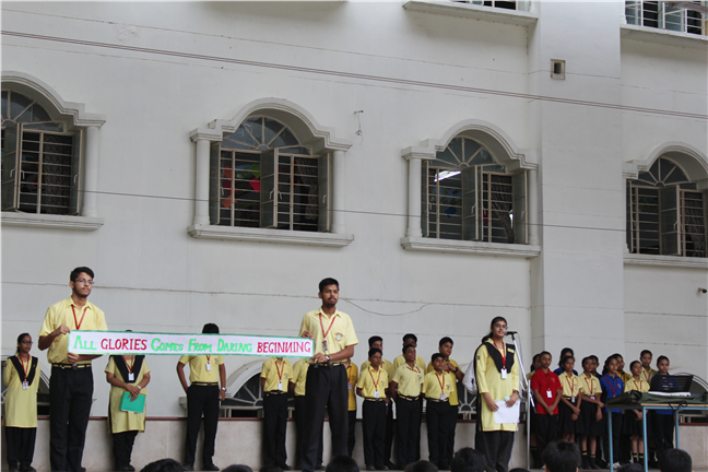 The morning sets the day and the assembly paves the way for our students to rejuvenate their spirits, remain rooted to the moral values and unleash their vitality to channelize their energy in a positive direction. Today's assembly was based on the topic: "ALL GLORIES COMES FROM DARING BEGINNING".
