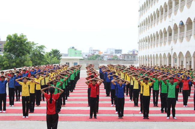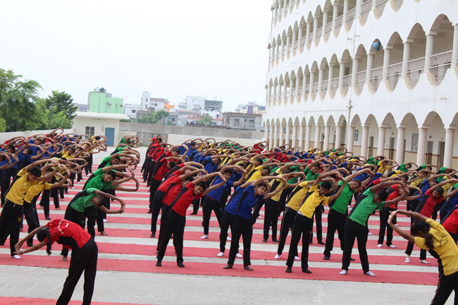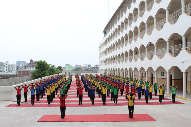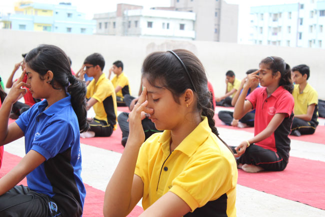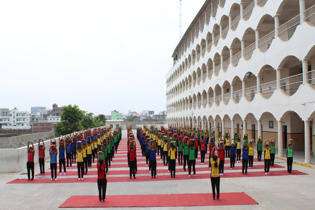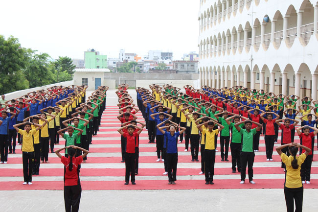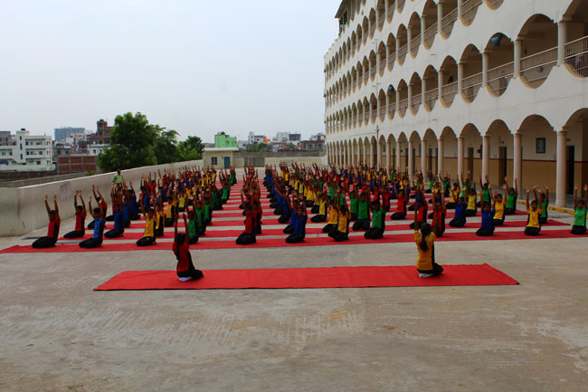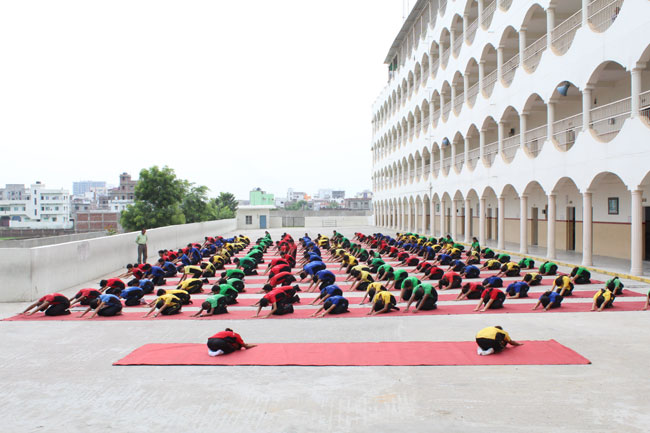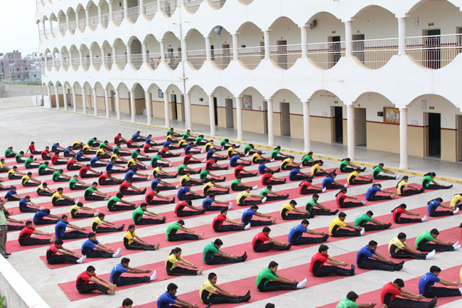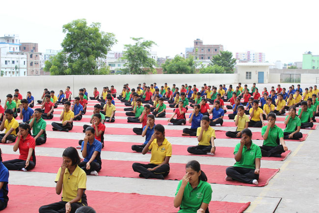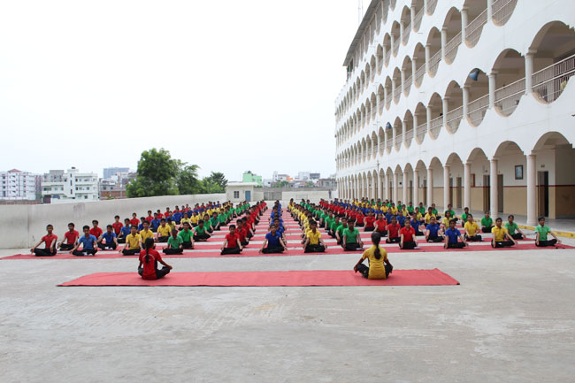 Students of St. Karen's Secondary School performing various asanas to participate with international Yoga Day celebration on 21st June 2016 at school campus.